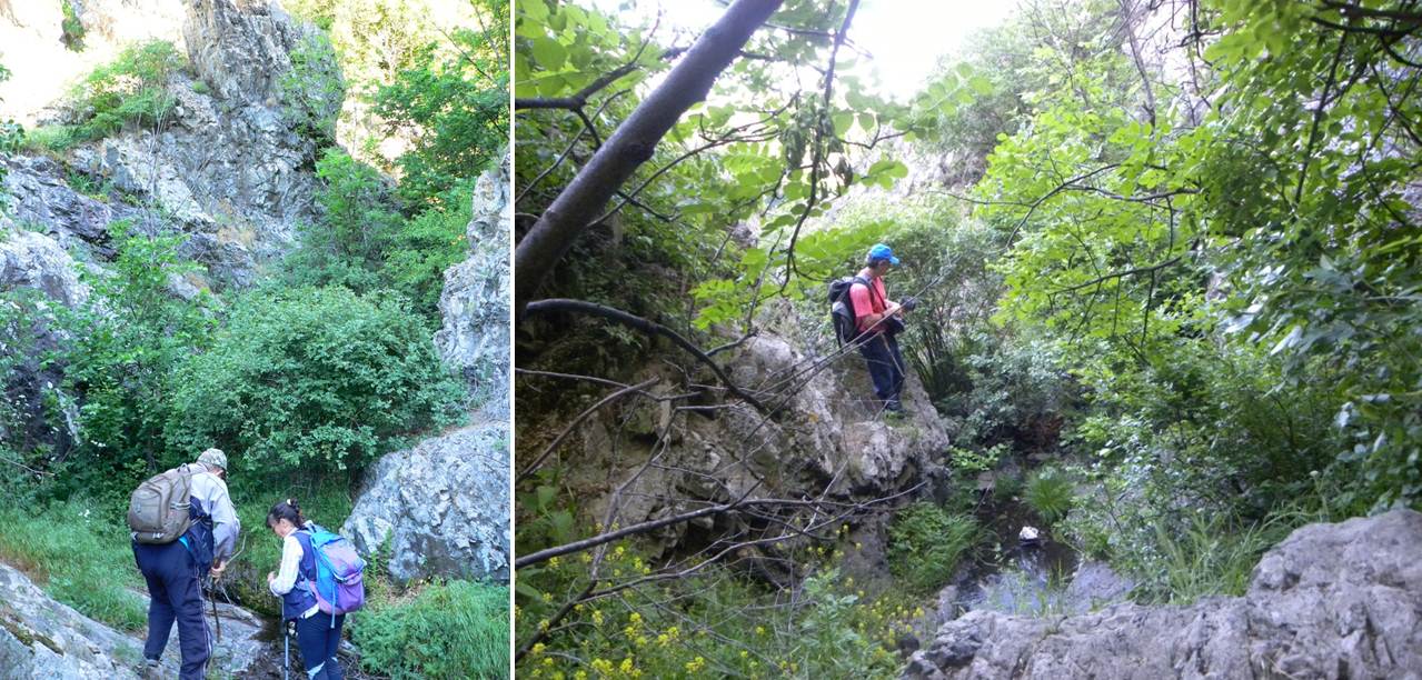 … și pătrundem aproape imediat în Cheile Chediului, în fața primei cascade, ce se ocolește pe stânga !