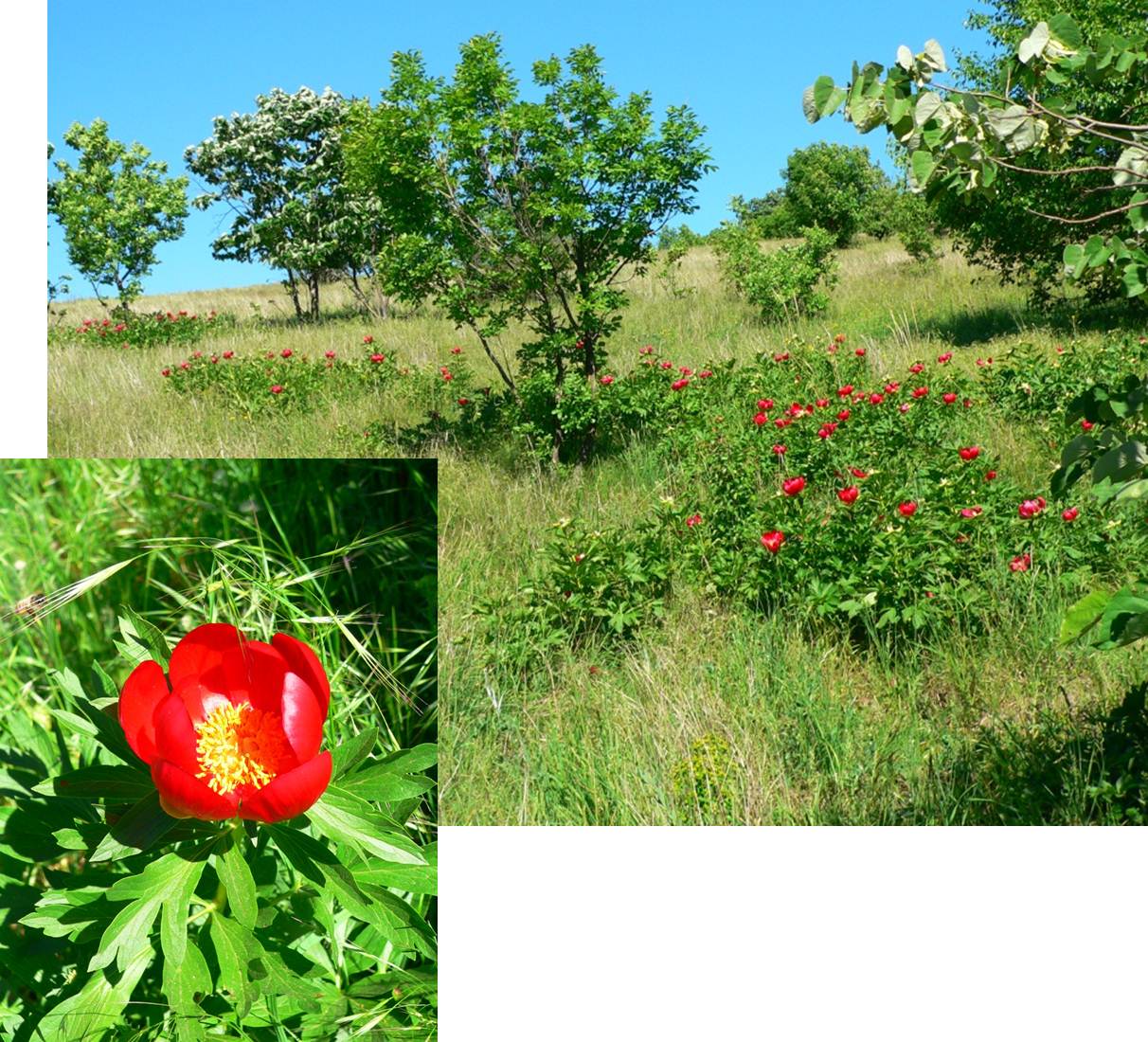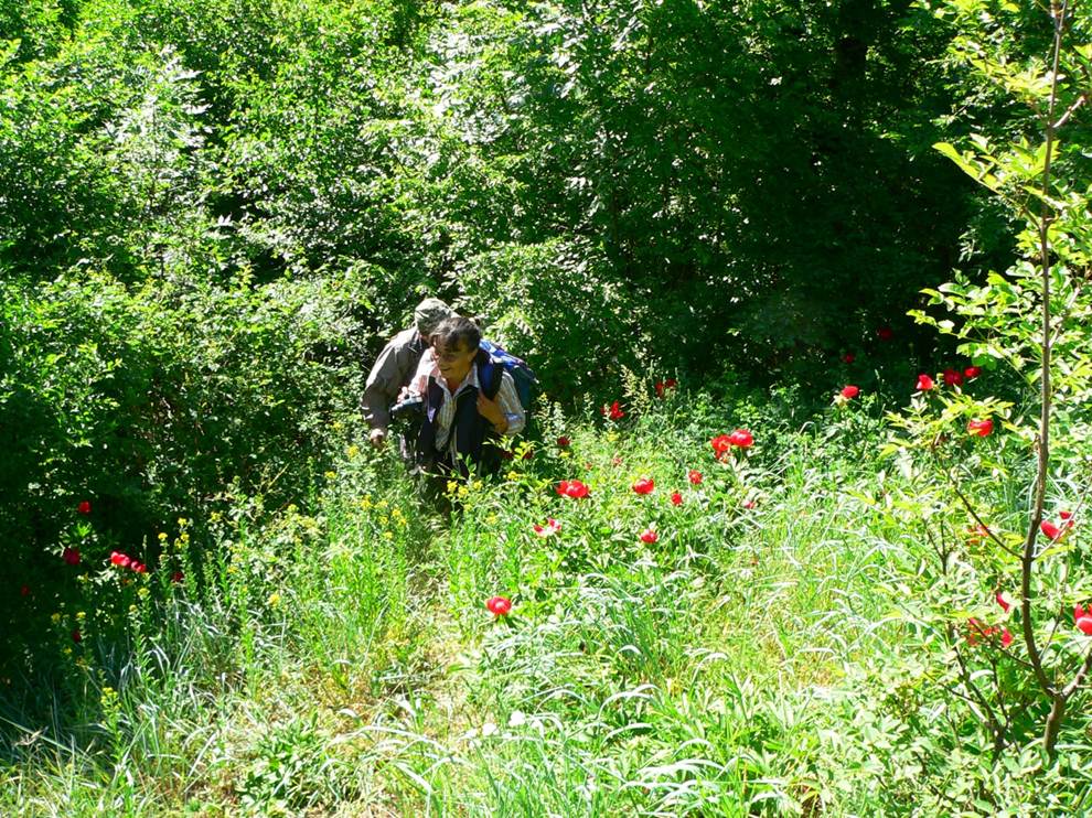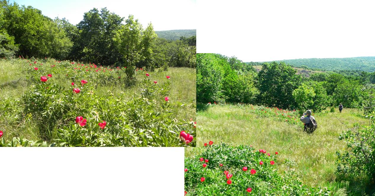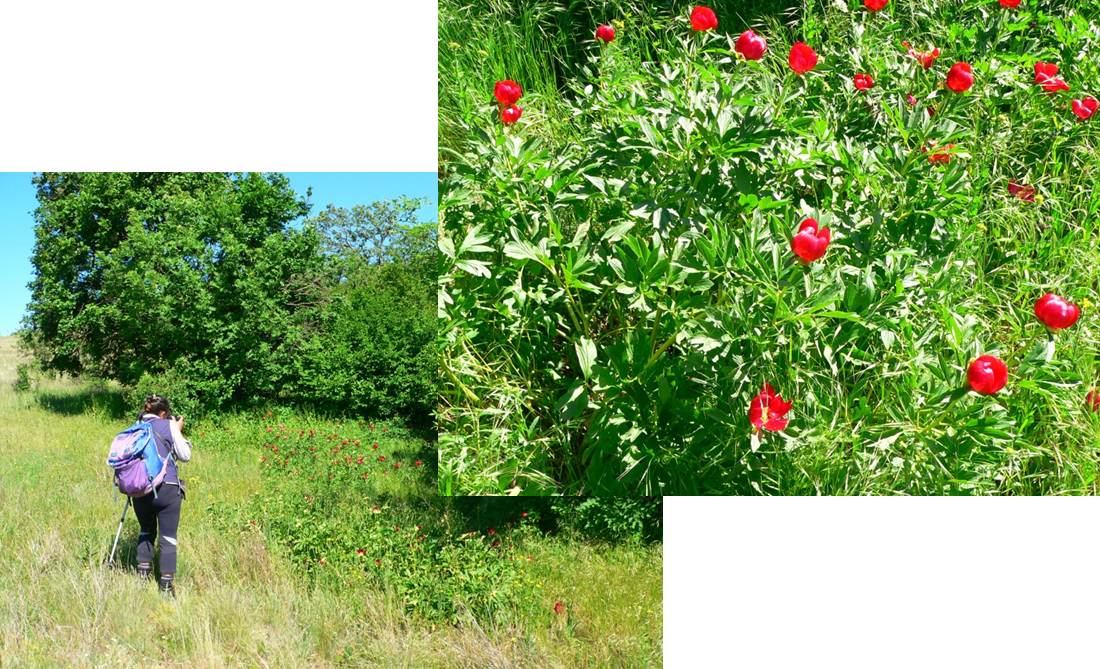 Cum ieșim din pădure, dăm … nas în nas cu bujorii (pentru care am și venit, de fapt, în Dobrogea) !