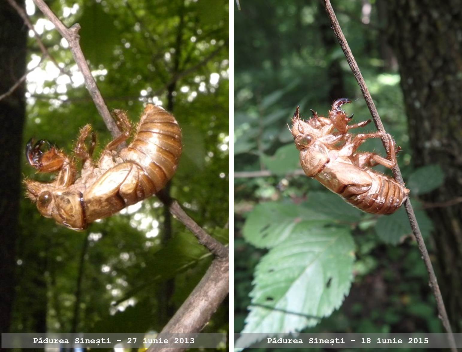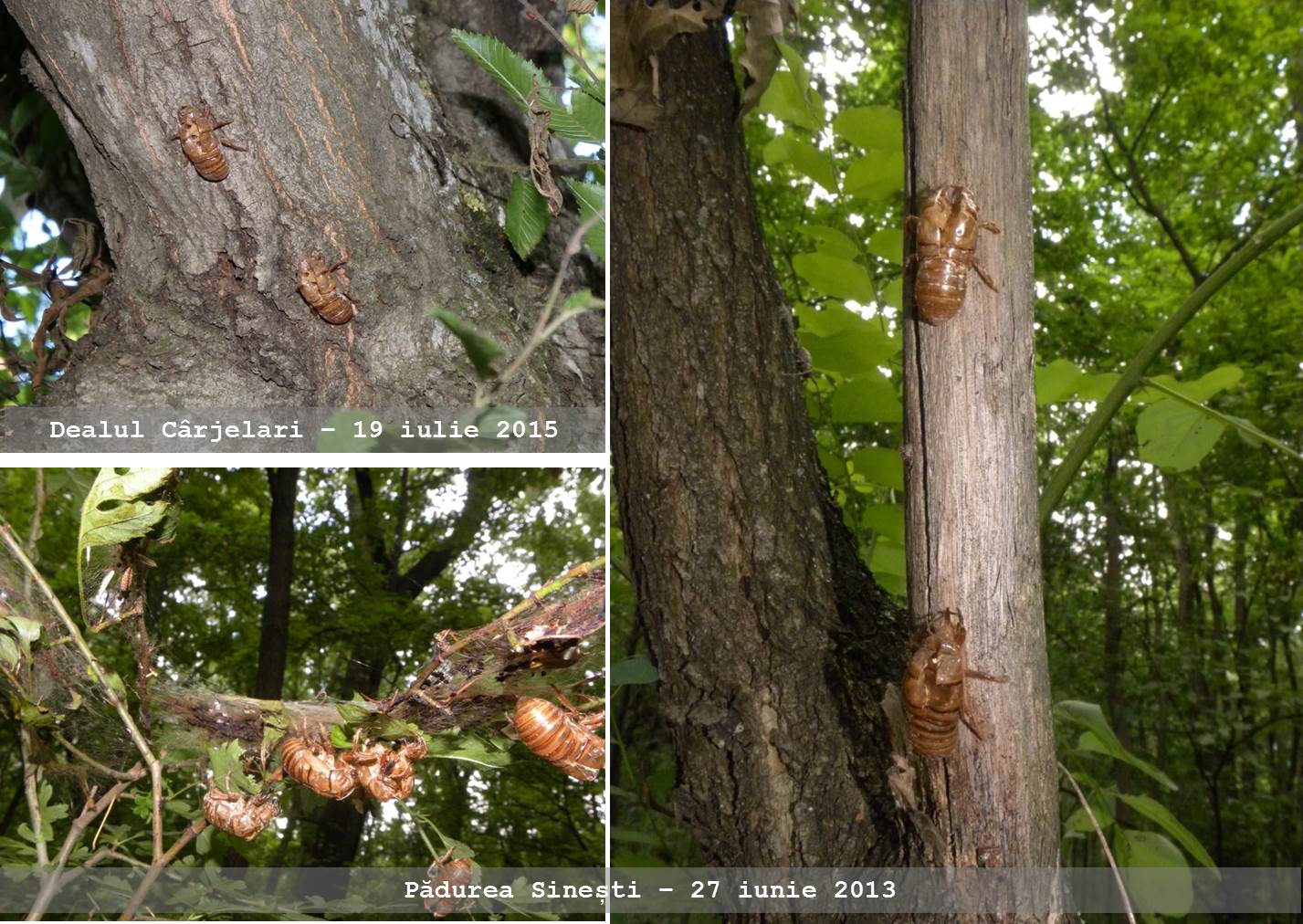 În urmă, rămân carcasele goale pe care, cine nu le cunoaște proveniența, le crede insecte vii, ce par să aștepte …ceva, atât de firesc și, în același timp, de bine sunt ancorate pe copaci.