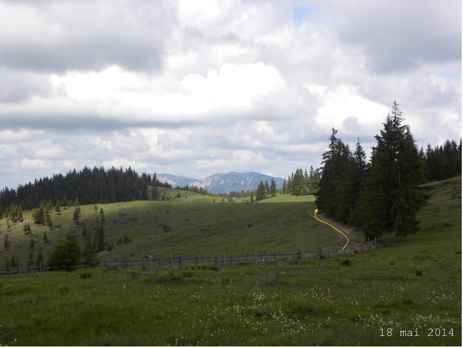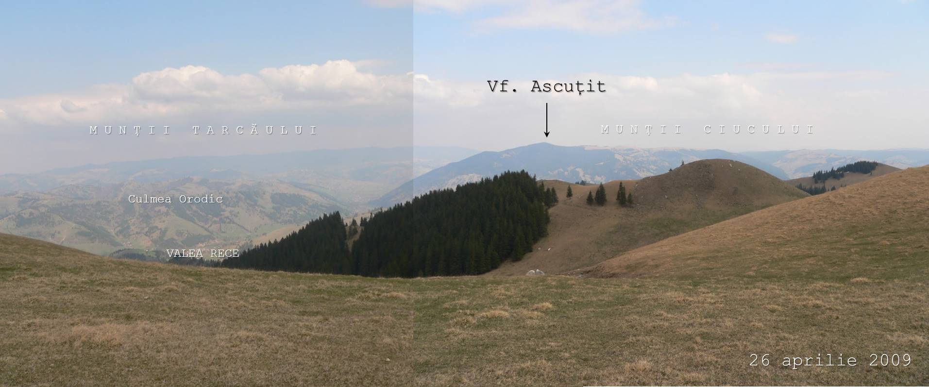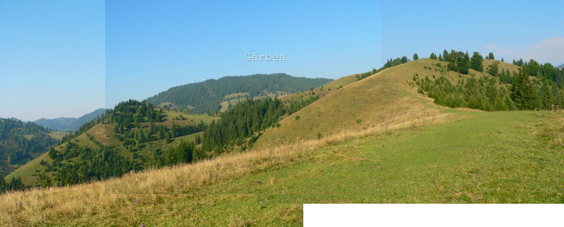 – în stânga, e șirul vârfurilor ce precede Muntele Gârbea (ce nu e un obstacol … serios, traseul ocolindu-l pe la extremitatea dreaptă);