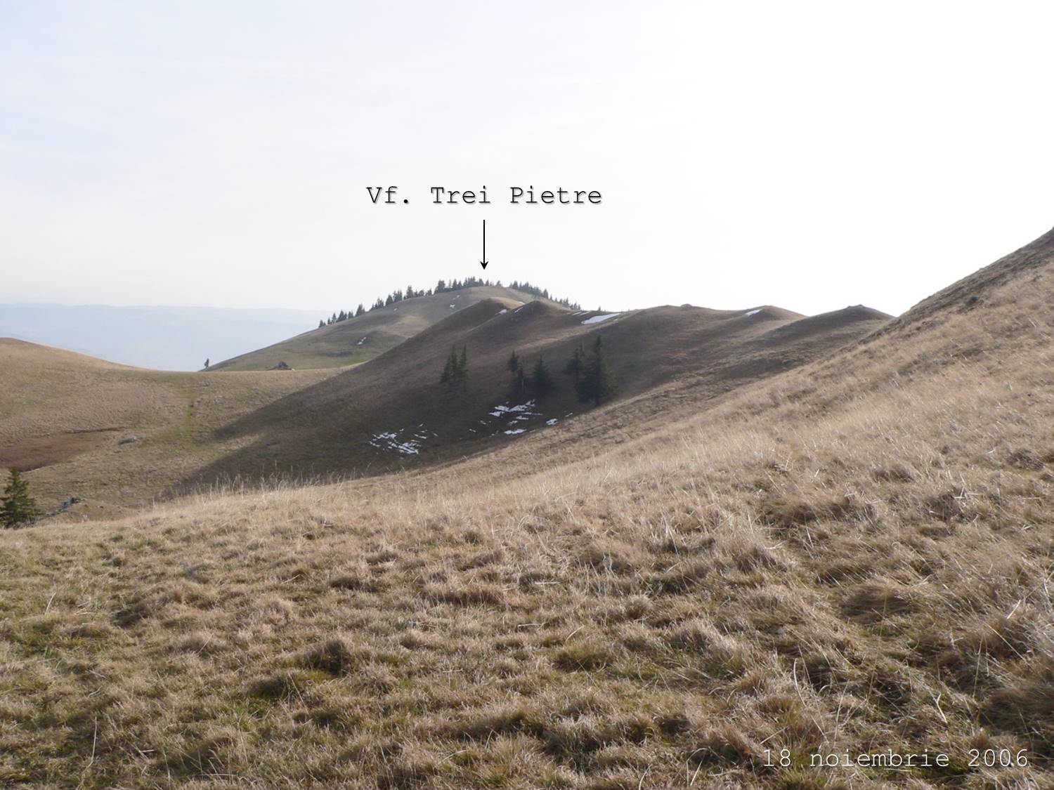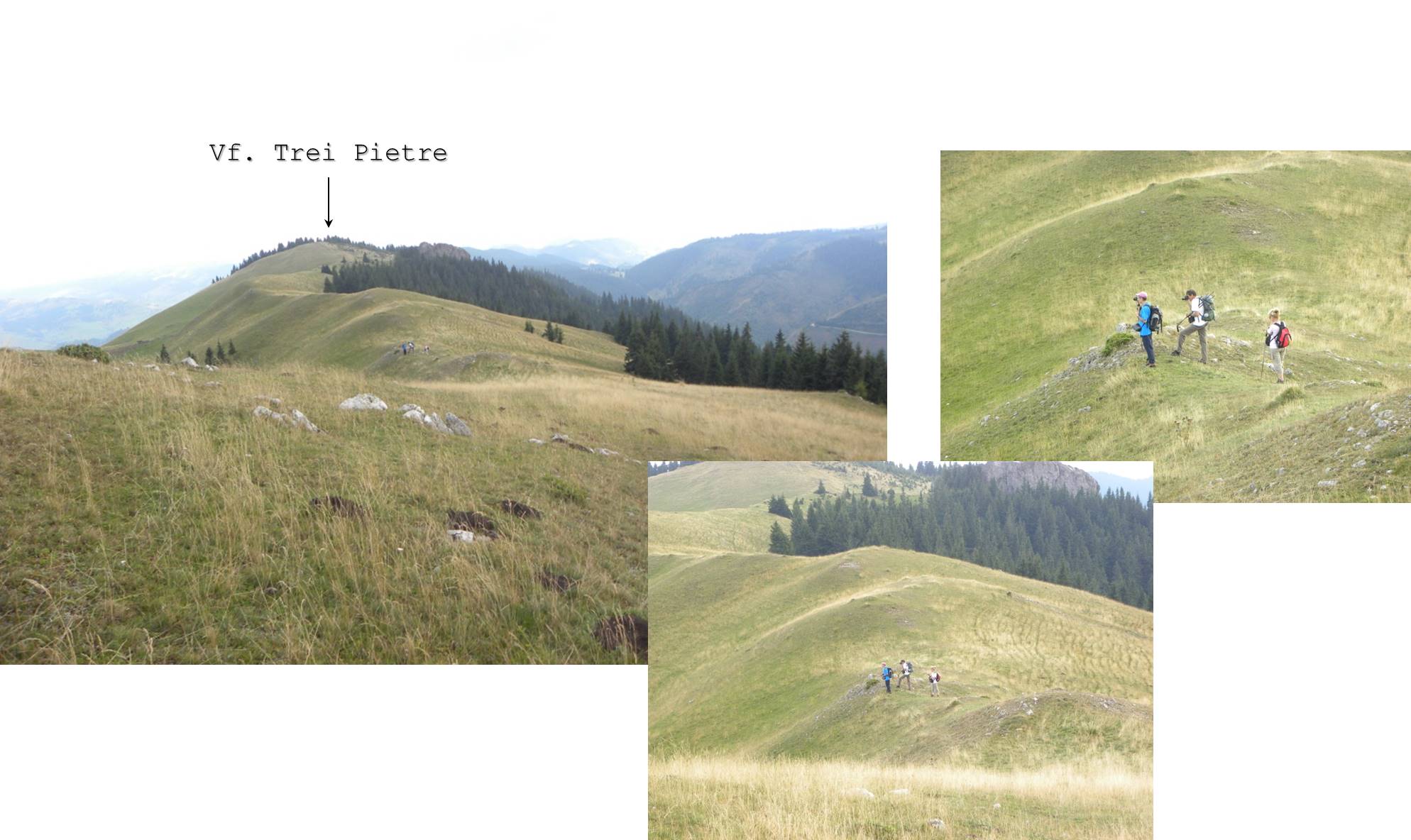 Putem ajunge la cele Trei Pietre urmând strict linia culmii, când suind, când coborând pe sinusoida ei …