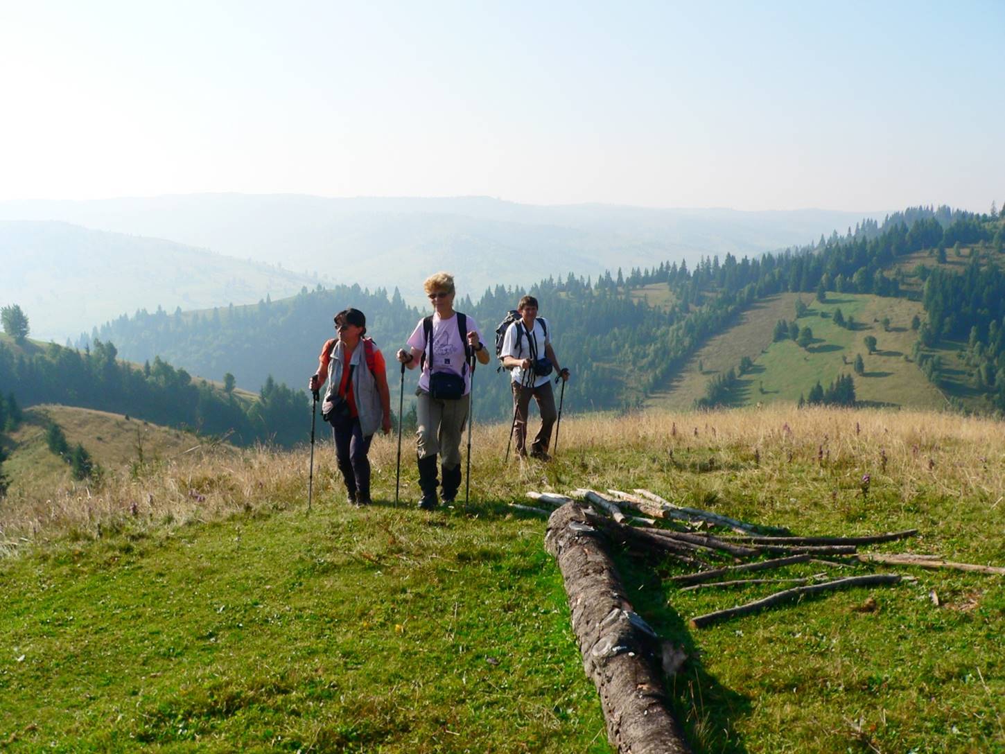 Pe cealaltă parte a Dealului lui Antal, drumul-potecă ne coboară prin pădure – una cu rariști -, scoțându-ne într-o zonă, relativ ondulată, acoperită de fânețe (cosite la ora trecerii noastre) !
