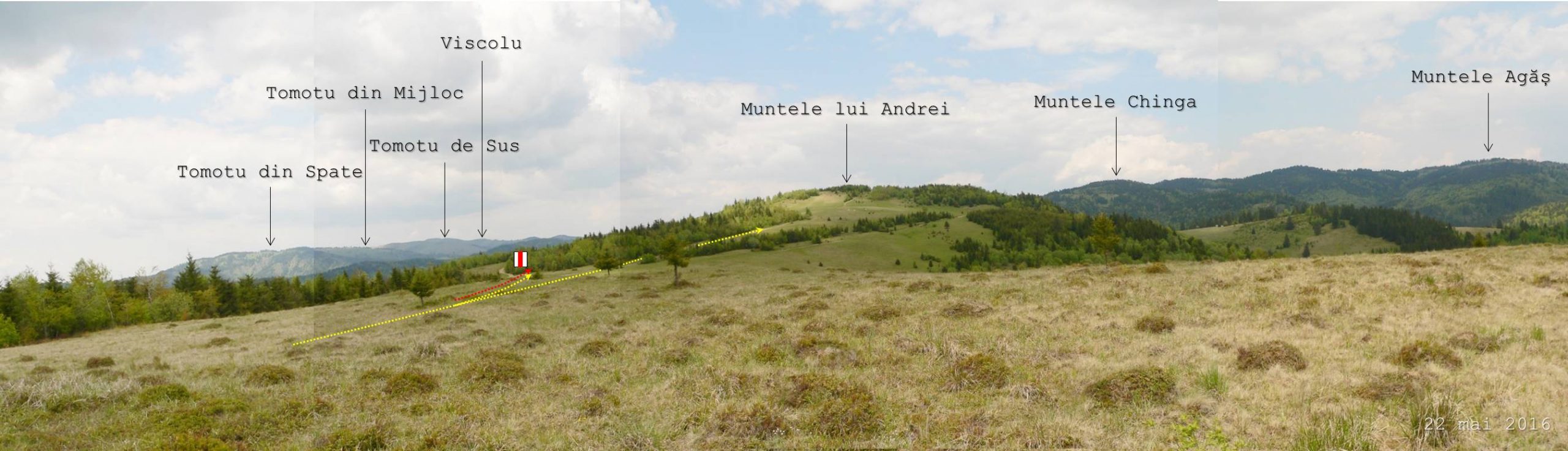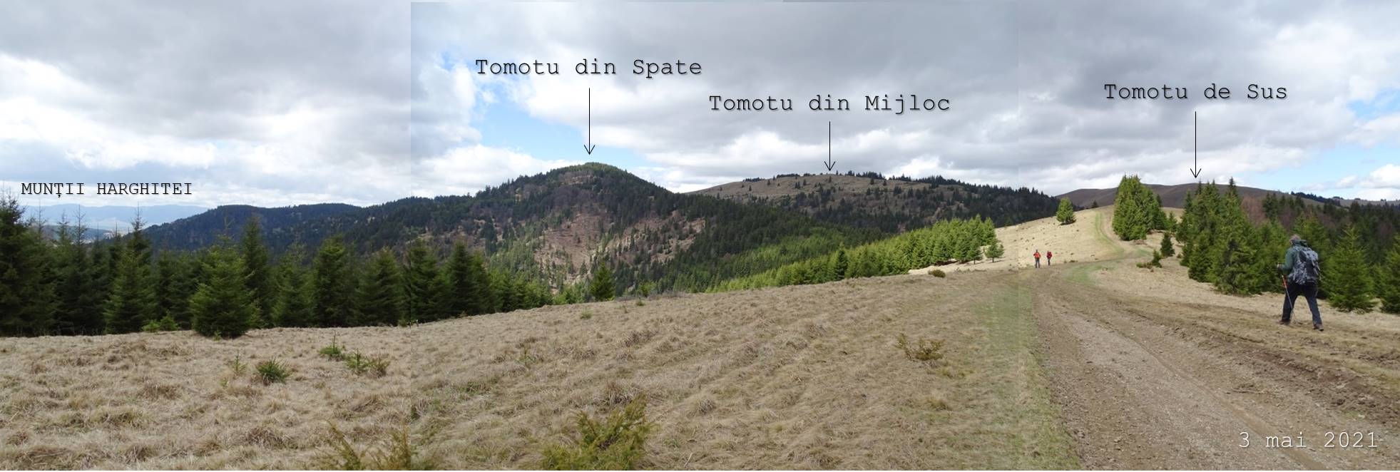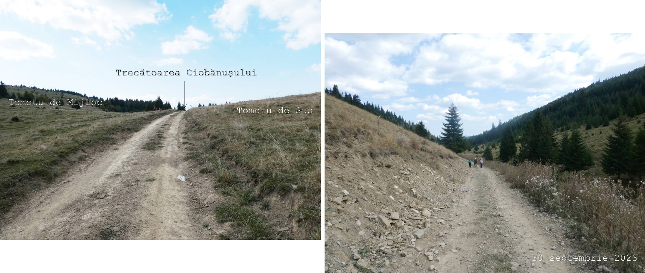 Dacă suntem atenți vom observa, plecând spre dreapta, urmele unui drum ce coboară pieziș prin pădure, spre șaua dintre Tomotul din Spate și Tomotul din Mijloc !