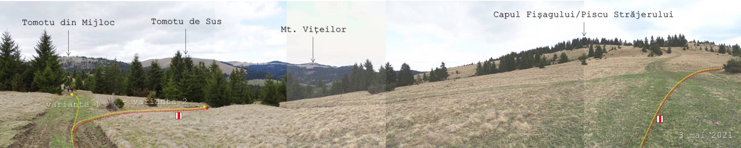 – rămânerea pe culmea principală, ceea ce presupune aburcarea pe Tomotul din Spate și încălecarea celui din Mijloc !