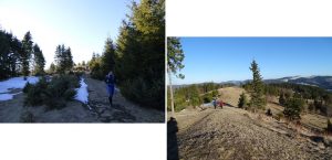 De la poalele vârfului ne înscriem pe drumul culmii principale a Munților Ciucului, mai mult teoretic, marcată cu bandă roșie !