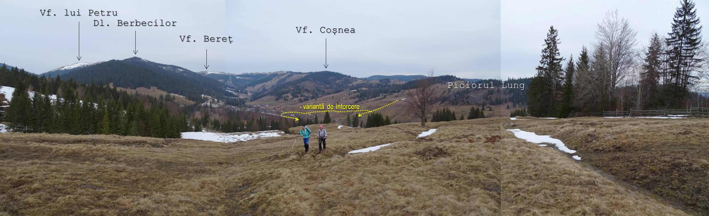 4. Coșnea – Dl. Berbecilor – Mt. lui Petru – Vf. Viscolul – Mt. Vițeilor – Piciorul Bradului – Coșnea