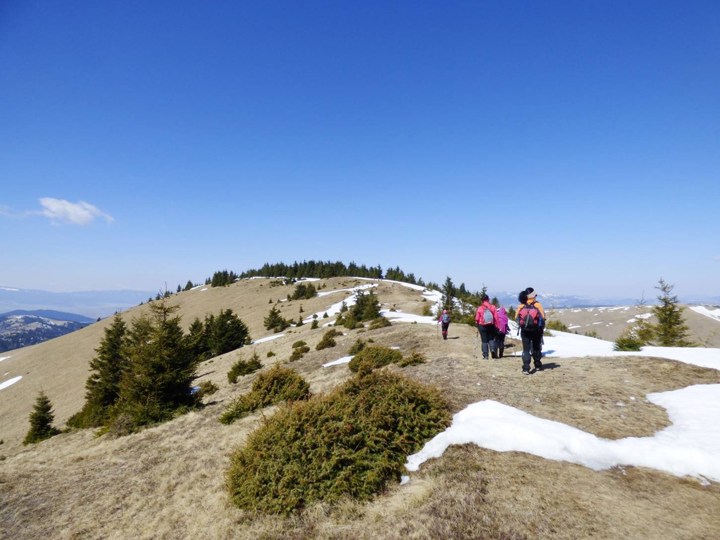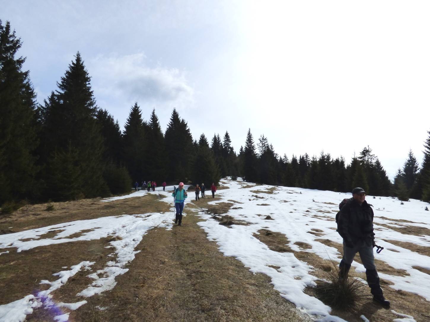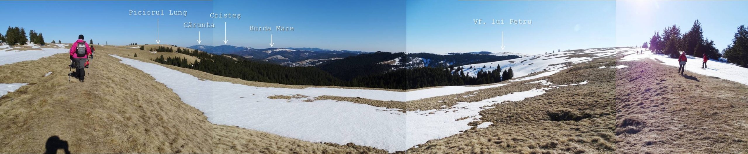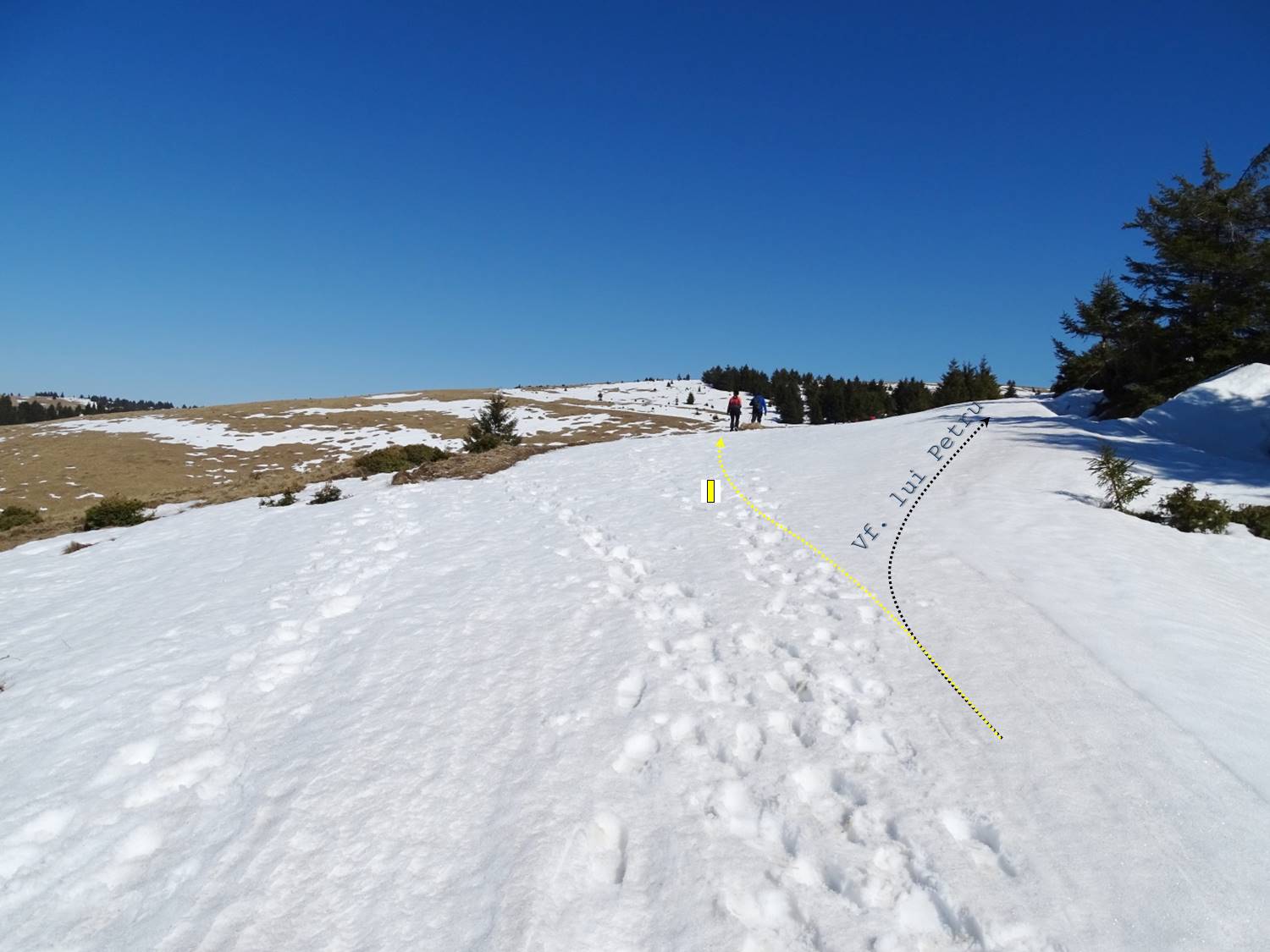 De la intersecția cu drumul asfaltat urmează să ne instalăm pe Muntele lui Petru, …