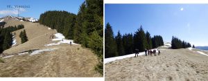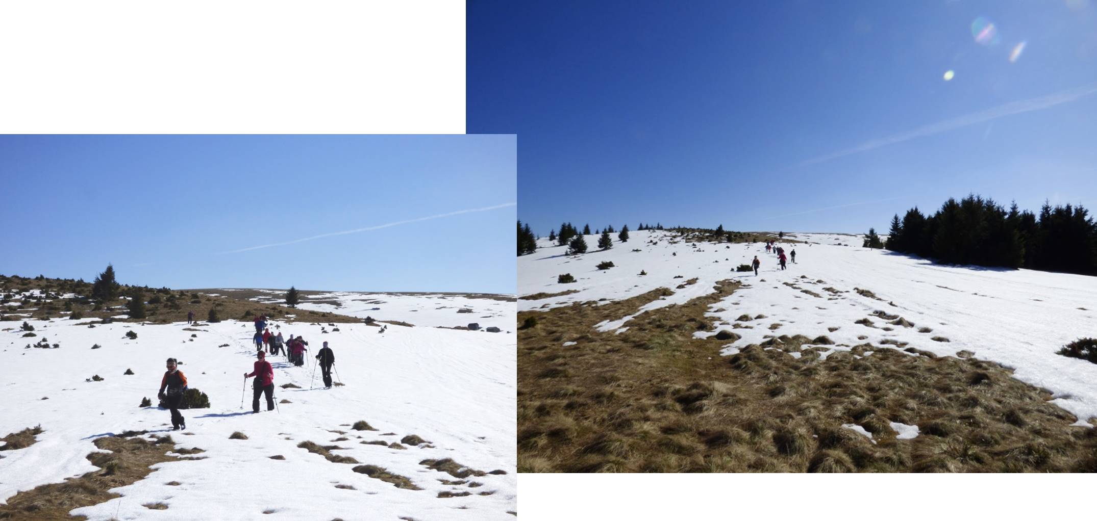 Zăpada mare de pe versantul vestic al culmii ne obligă să trecem pe versantul estic, mai … curat, …