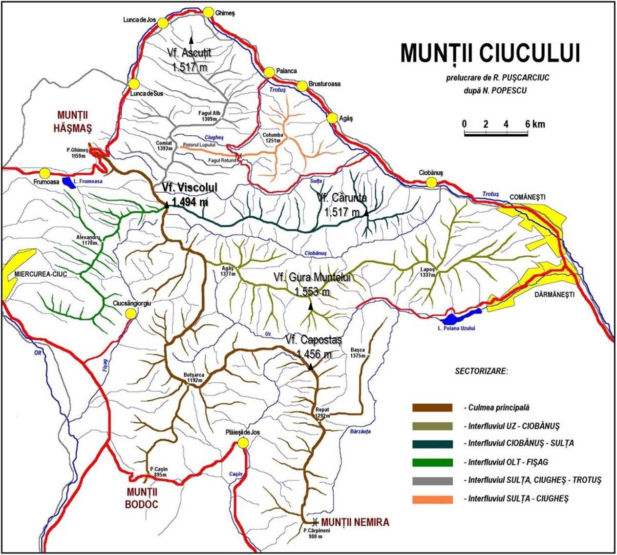 Din Curmătura Cailor ne-am înscris pe un lung interfluviu al Munților Ciucului, Ciobănuș – Sulța, care pleacă din Muntele Viscolul și se termină cu Muntele Cărunta; între ele, Muntele Vițeilor, Obcina Coșnea, Burda, Cristeș, Șolintaru.