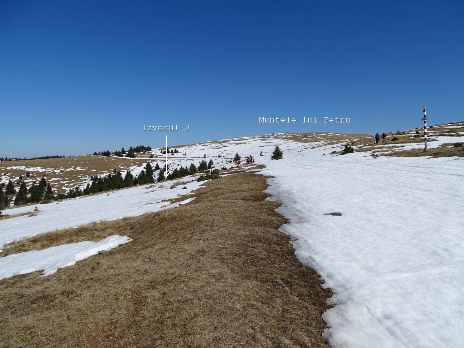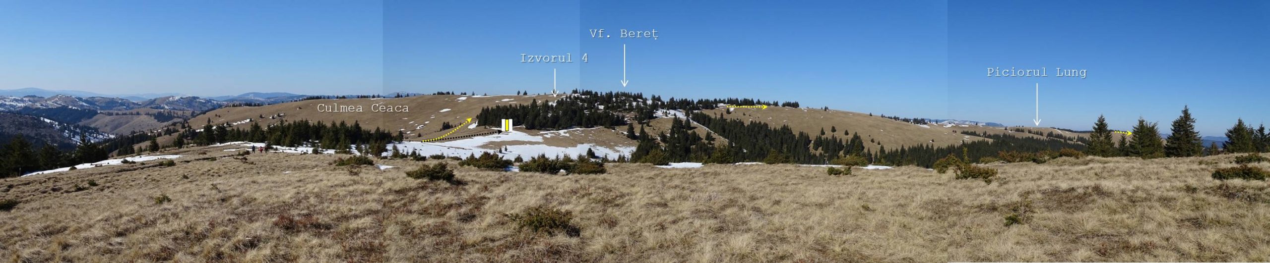 … pentru a ajunge în șaua de sub Izvorul 4. De acolo vom părăsi marcajul bandă galbenă, pe care, teoretic, îl vom reîntâlni pe Vârful Bereț, dar după ce vom trece pe la izvor !