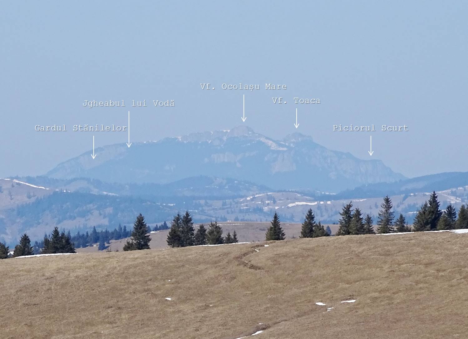 De aici, de sus, nu putem trece cu vederea imaginile mai mult sau mai puțin estompate de depărtări, limpezite puțin cu zoom-ul aparatului foto, ale celor doi … uriași cu fruntea-n soare: …