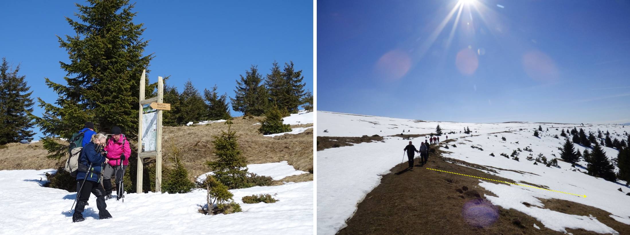 Continuându-ne peripluul pe marginea amfiteatrului de deasupra celor 4 izvoare ale Trotușului ajungem negreșit la indicatorul turistic ce ne îndreaptă pașii spre