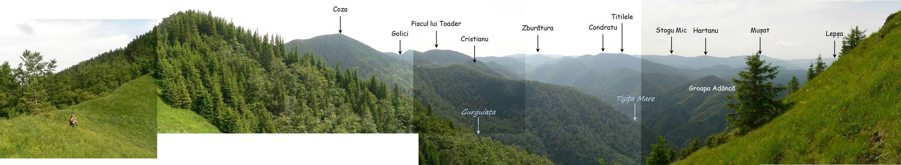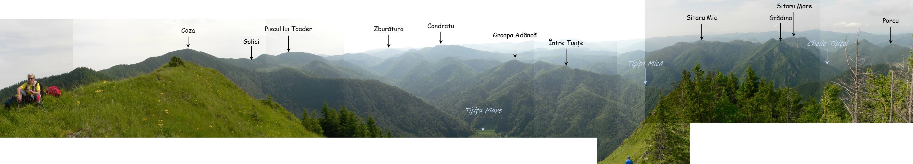 … și o … (nouă) panoramă și de unde triunghiul roșu ne părăsește, pentru a coborî, prin valea Gurguiata (nu Cristianu, cum greșit apare prin ghiduri), în valea Tișița Mare !