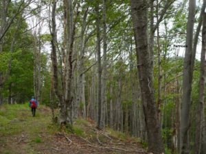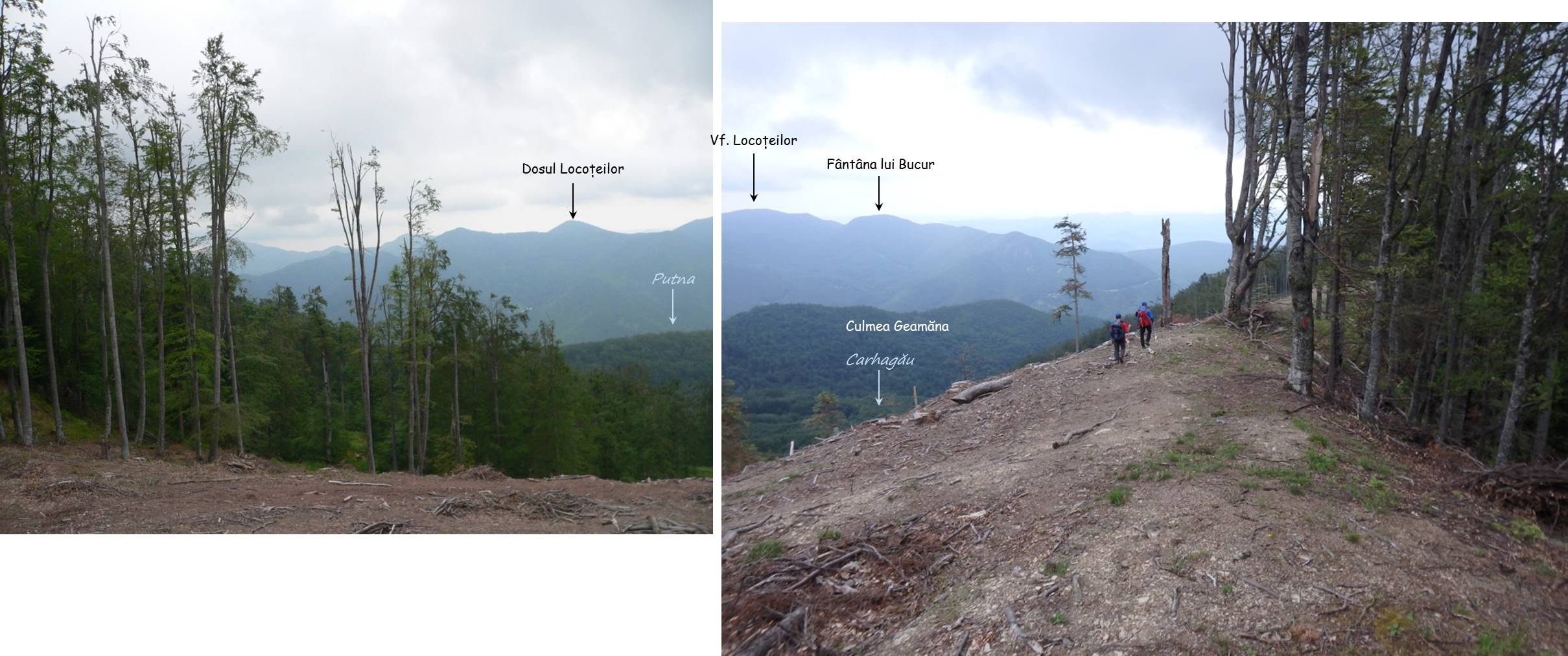 … Curmătura fiind încins de un de un … bun drum forestier care ne preia de pe versantul ei sudic, …