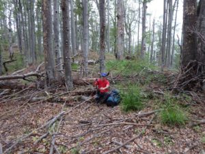 … se oprește într-o șa joasă (-250 m), de unde suim pe culmea (important – ! -, marcată silvic) Piatra Uscată !