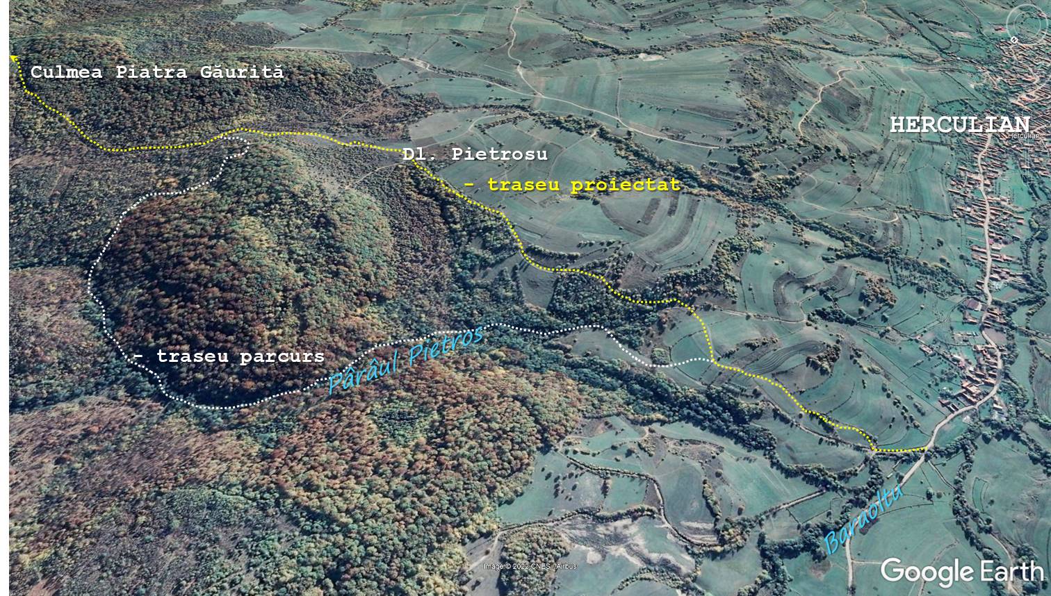 Traseu: HERCULIAN (Gura Pietrosului) – Dl. Pietrosu – Valea Pietrosului – Culmea Piatra Găurită – Dl. Mateiu Mare – Furnalul Botvaj – Valea Bradul Mare – Dl, Roșu – Dl. Negru – Refugiul Cucu – Vf. Cucu – Cabana de vânătoare Cucu – La Mestecăniș – Piciorul Scurt – Valea Negrului – Valea Baraolt – Gura Pietrosului