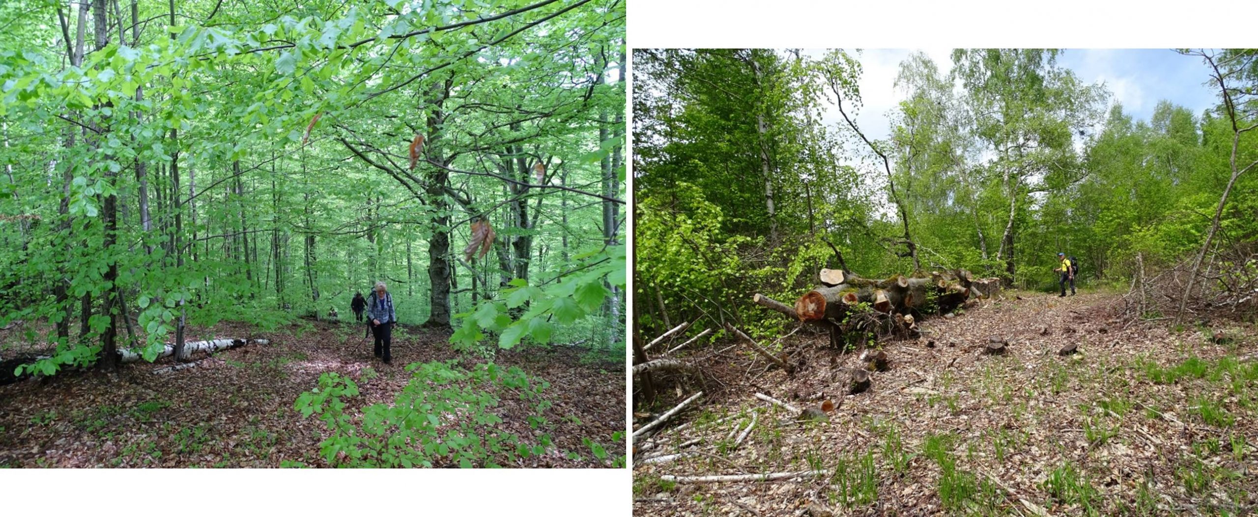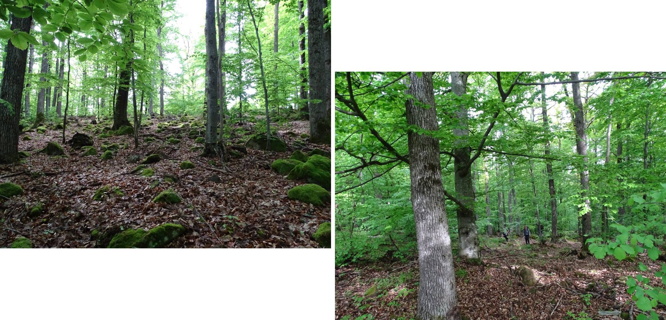… nici măcar prin pădure, pe drumul, din fericire, bine conturat de pe culme, din nou curbat, dar spre nord-est și apoi nord, și cu atât mai puțin pe culmea plată a Dealului Mateiu Mare acoperit de mestecănișuri tinere. Mai mult, traversând un parchet nu de foarte mult timp închis, apar drumuri de exploatare ce ne pot lesne … fura ! Menținem însă direcția nord, …