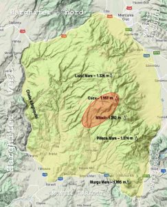 … în timp ce în sud sunt doar vreo patru vârfuri de peste 1.500 m, cel mai mult având Vârful Cucu: 1.557 m. “Cucerirea” lui este, de altfel, obiectivul principal al drumeției – din 22 mai 2021 – descrise în continuare !