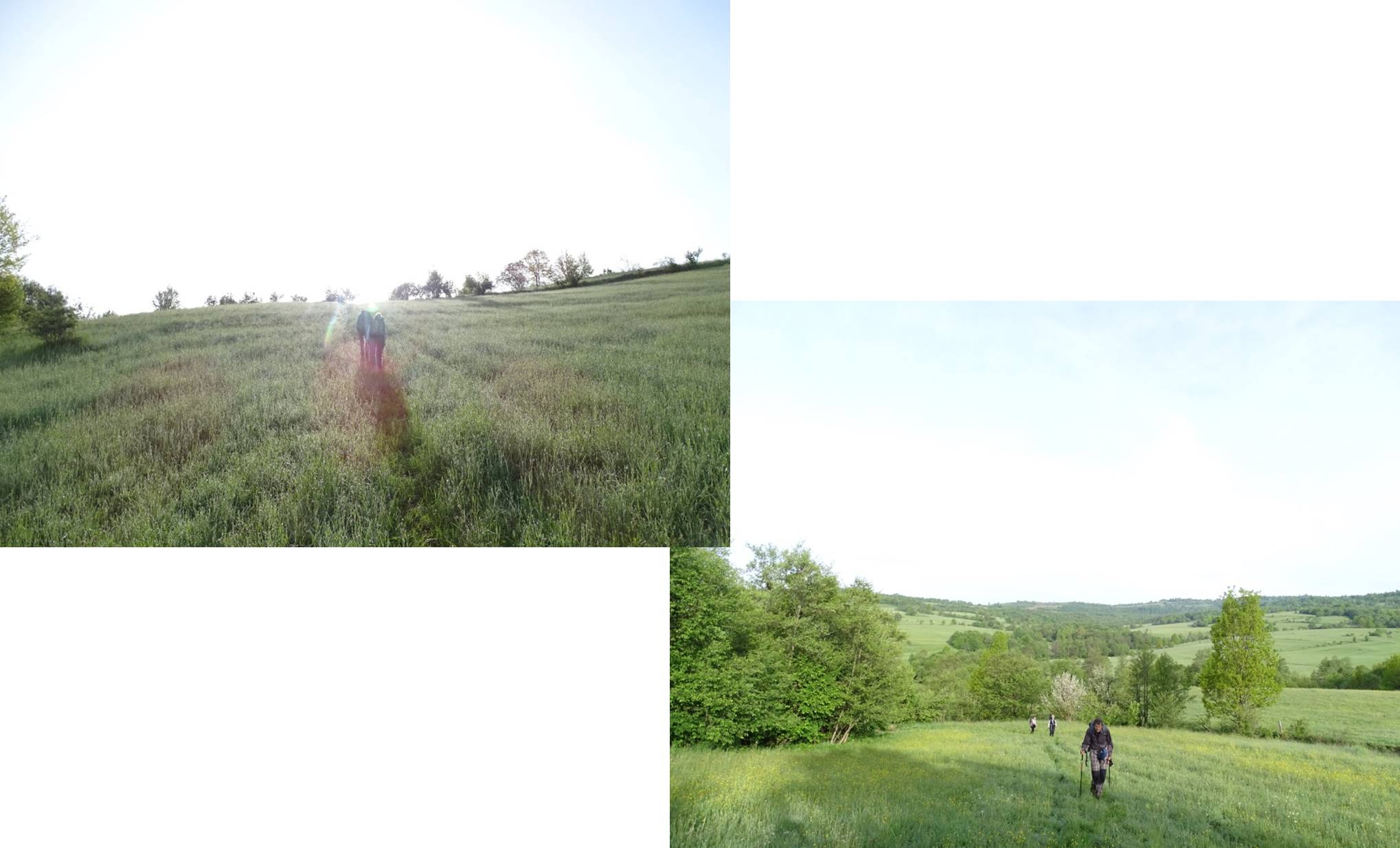 Traversăm câteva pâlcuri de pădure despărțite de poieni, …