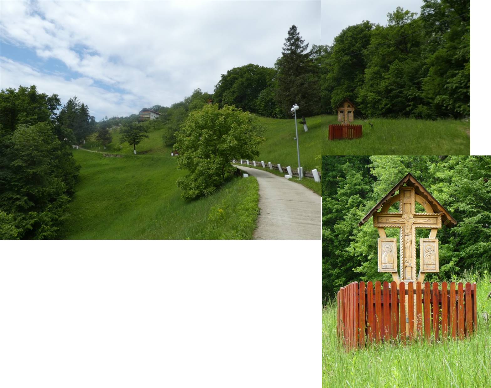 Aleea, după ce trece pe lângă o troiță alegorică …
