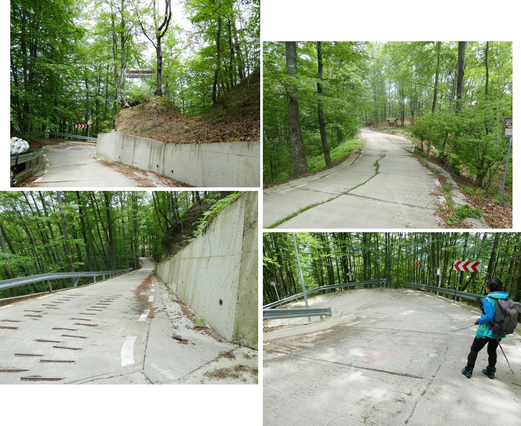 De la mânăstire coborâm pe drumul betonat, impresionant ca realizare tehnică, dar solicitant la urcare din cauza pantelor accentuate și strânse.
