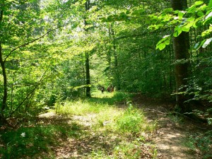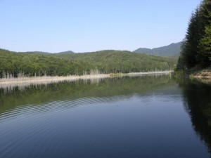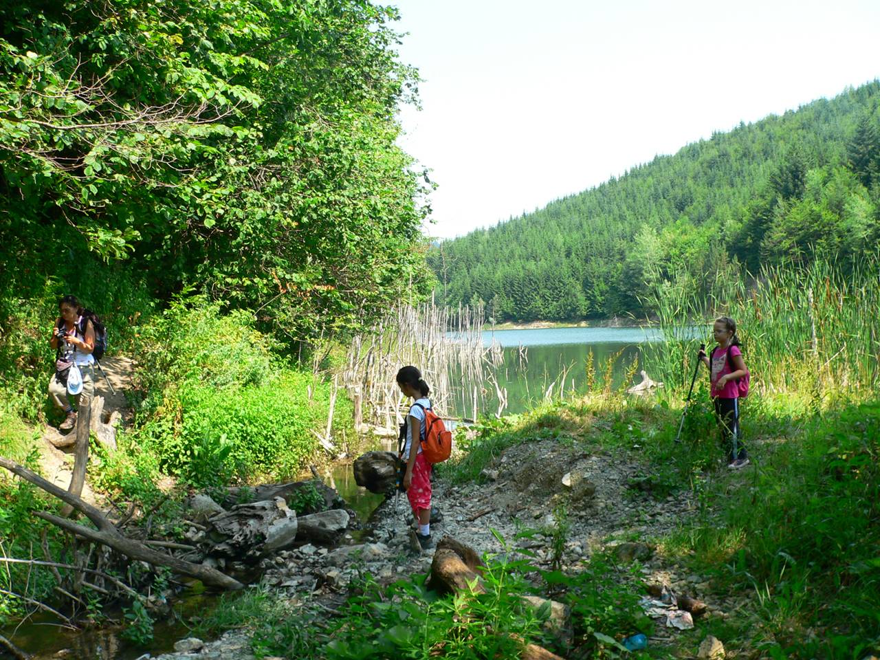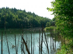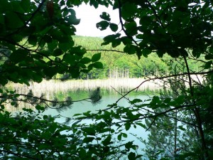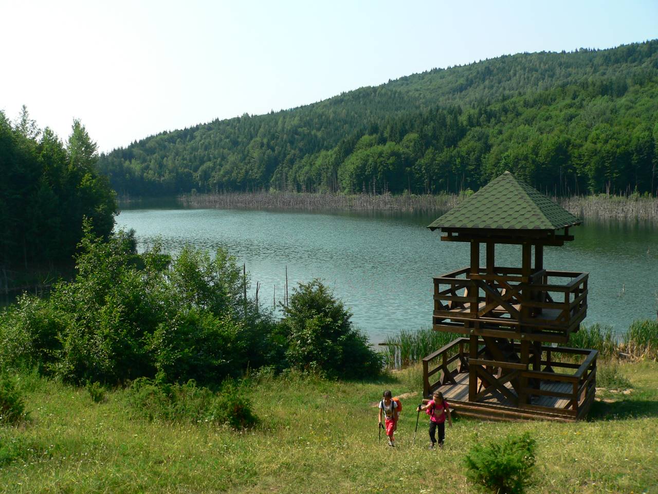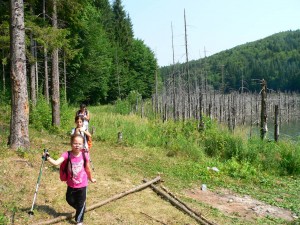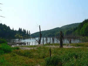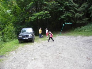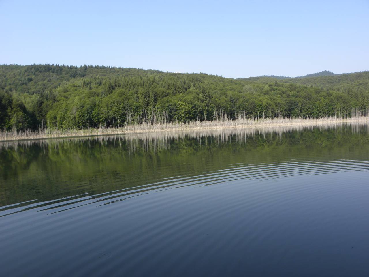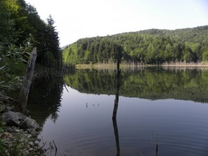 Mergând spre coada lacului, ascuns de perdeaua de brazi de pe malul său !