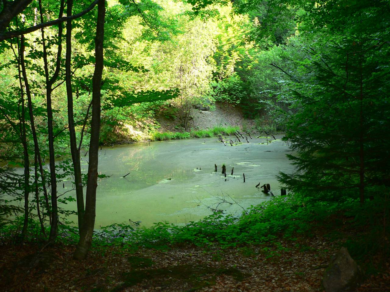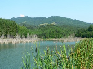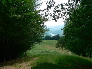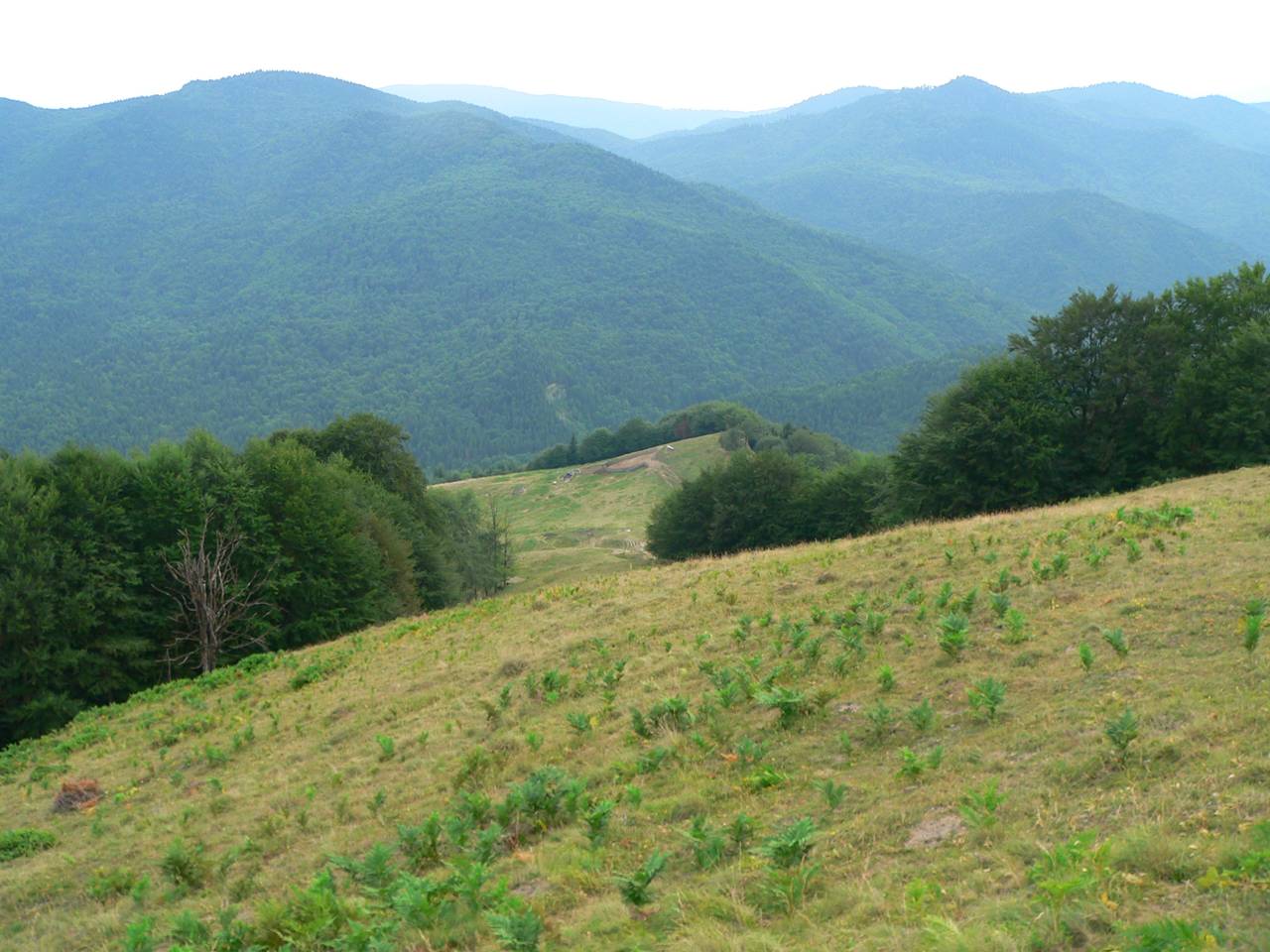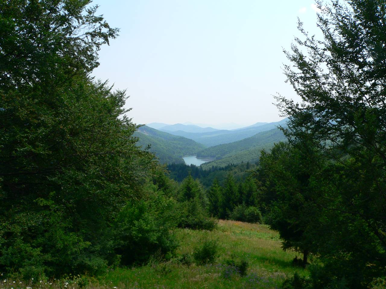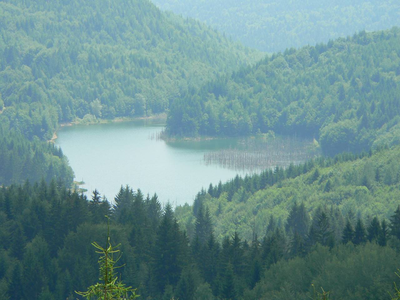 Vedere spre Lacul Cuejdel din capătul de jos al poienii …