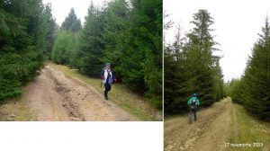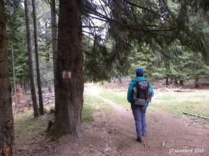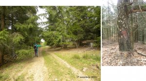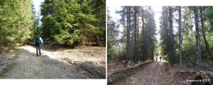 În pădure ne reîntâlnim cu marcajul turistic ! Drumul se desface în două, ambele ramuri evitând panta maximă; alegem ramura de jos, deși cu un ocol mai larg, …