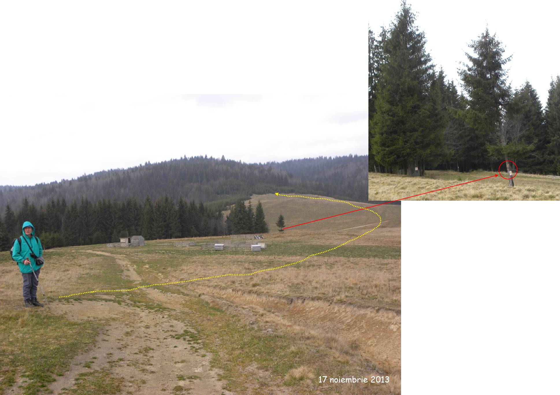 Plecăm din Pasul Cărpineni, având, ca punct de reper, stâlpul indicator aflat în apropiere (unde am și ajuns venind din Nemira) !