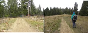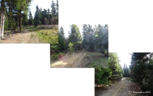 Totuși, mici poienițe și luminișuri prin pădurea, și așa rară, drumul cvasi orizontal, ne dau senzația de plimbare; oarecum monotonă, e drept !