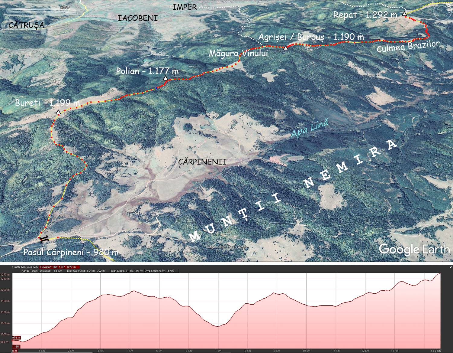 – punct de plecare: 46.147727N, 26.203707E, 980 m alt.