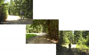 … începând să suie printr-o pădure relativ compactă (deocamdată, căci defrișările sunt, cum vom vedea imediat, posibile), timp de o oră și jumătate, de la părăsirea Vârfului Burcuș !