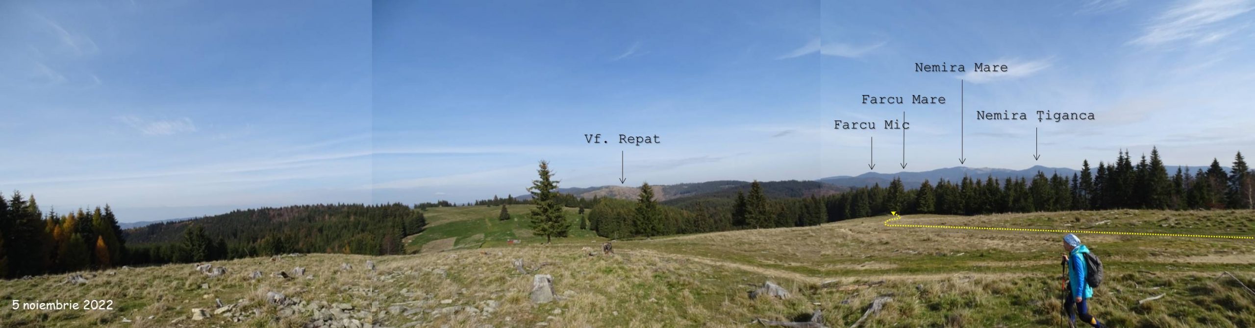 După cum constatăm, Repatul, ținta noastră principală, se află dincolo de adâncul și largul evantai al obârșiilor pârâului Repatul Mare. Drumul care marchează traseul nostru (dar cvasinemarcat turistic) va ocoli mult spre dreapta aceste obârșii !