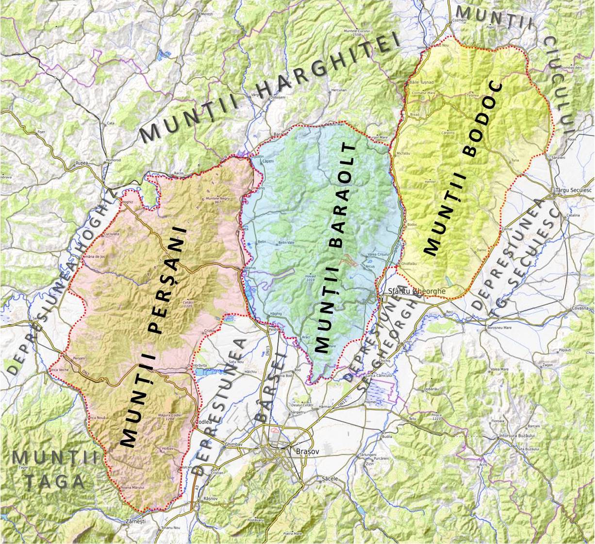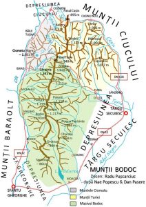 – dacă granița vestică e clară, ca și cea nordică, datorită râurilor Olt și Cașin (secuiesc) care le realizează, spre sud și est, spre depresiuni, convențional, ea urmărește curbele de nivel din intervalul 500-600 m.