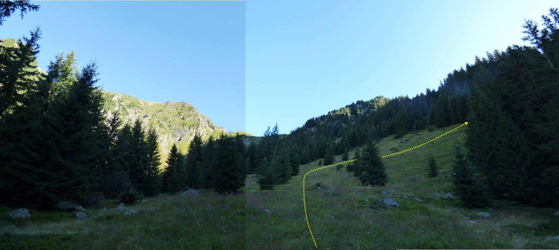 … suim ușor într-o poieniță, pe care o vom părăsi imediat prin capătul ei din stânga !
