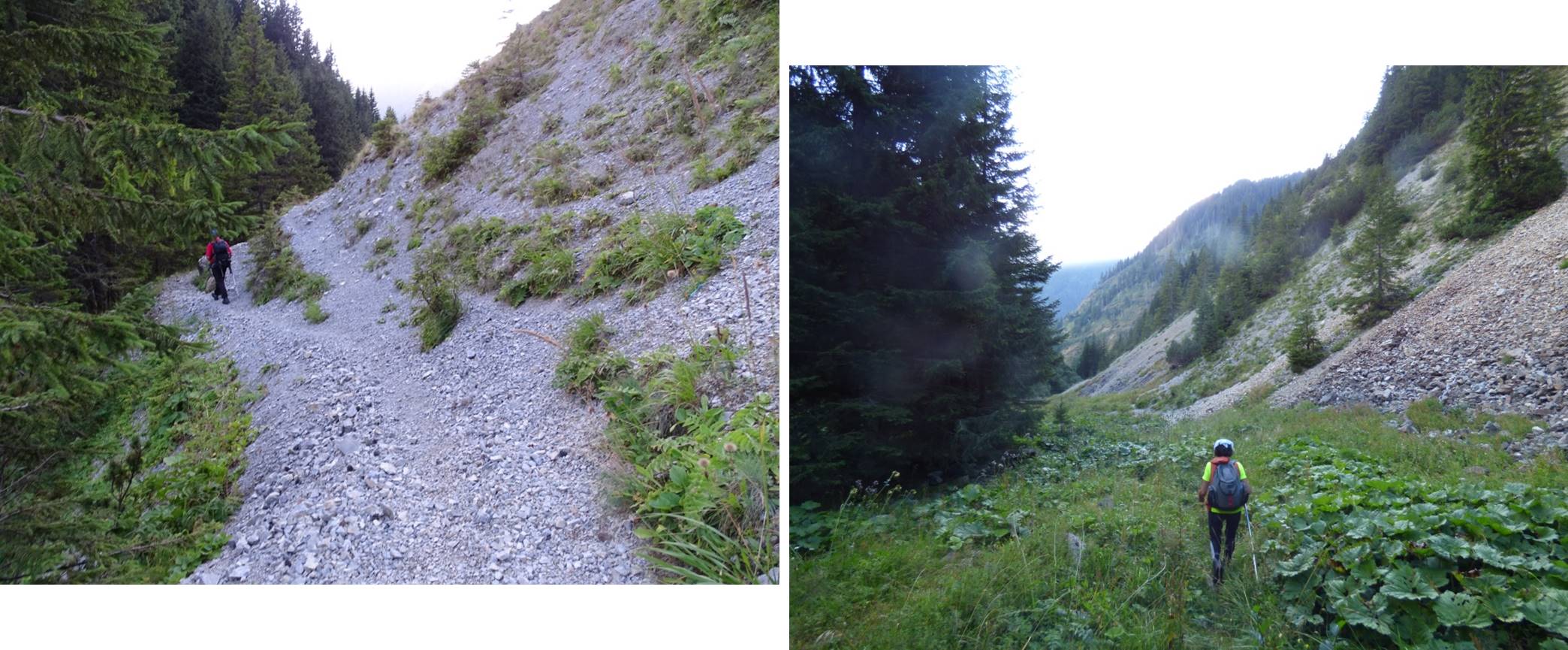 Puțin mai jos, traversăm o limbă largă de grohotiș …