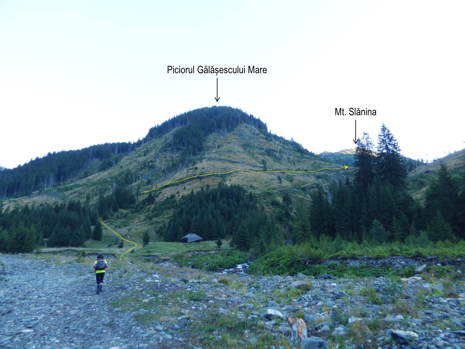 … și folosim un drum de tractor ce încalecă vârful … Piciorului Gălășescului Mare !