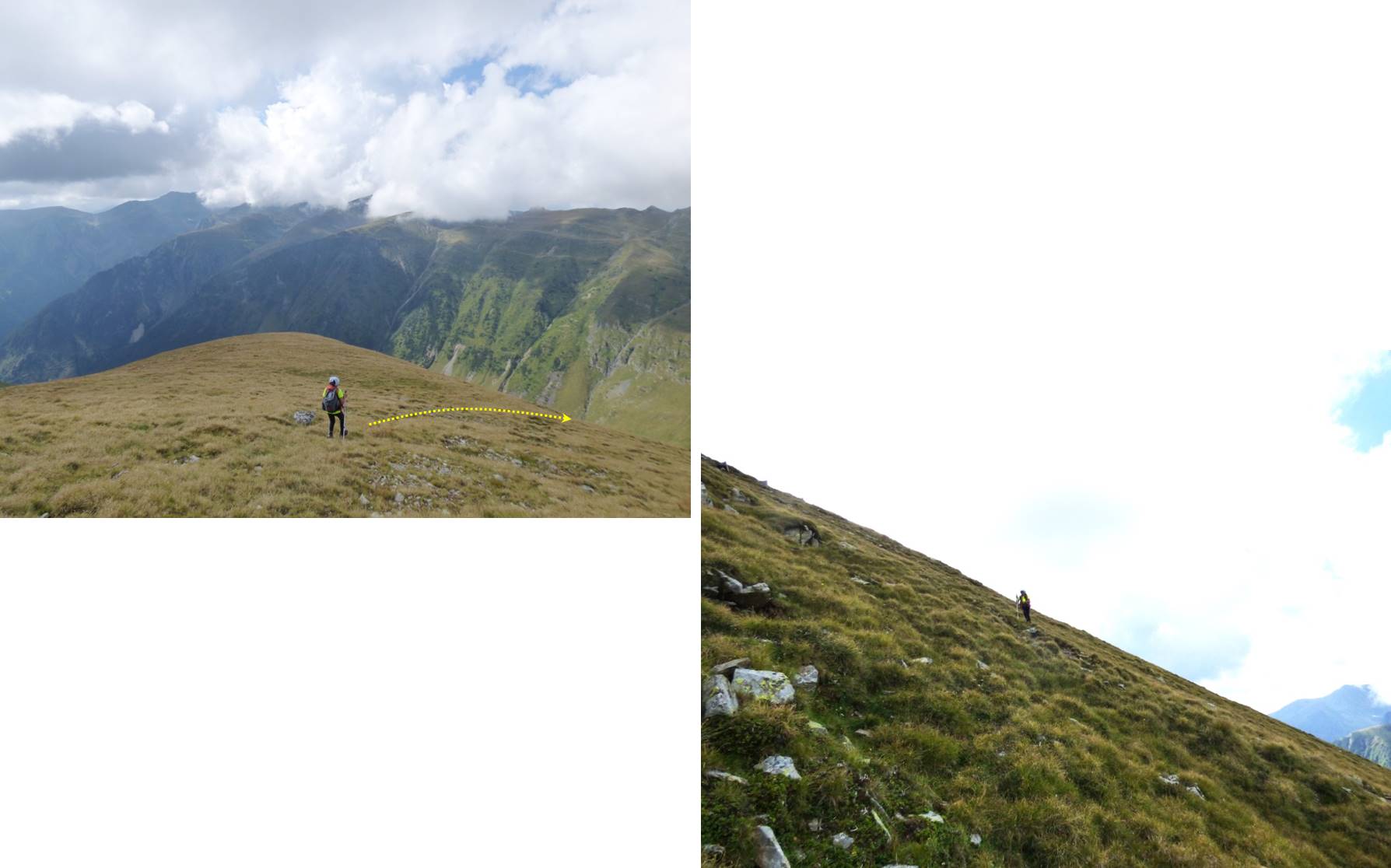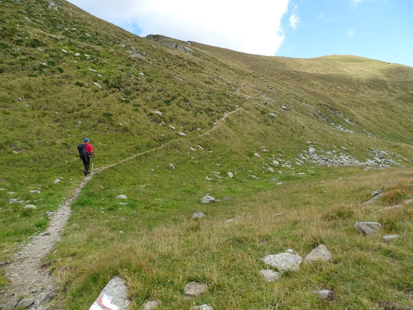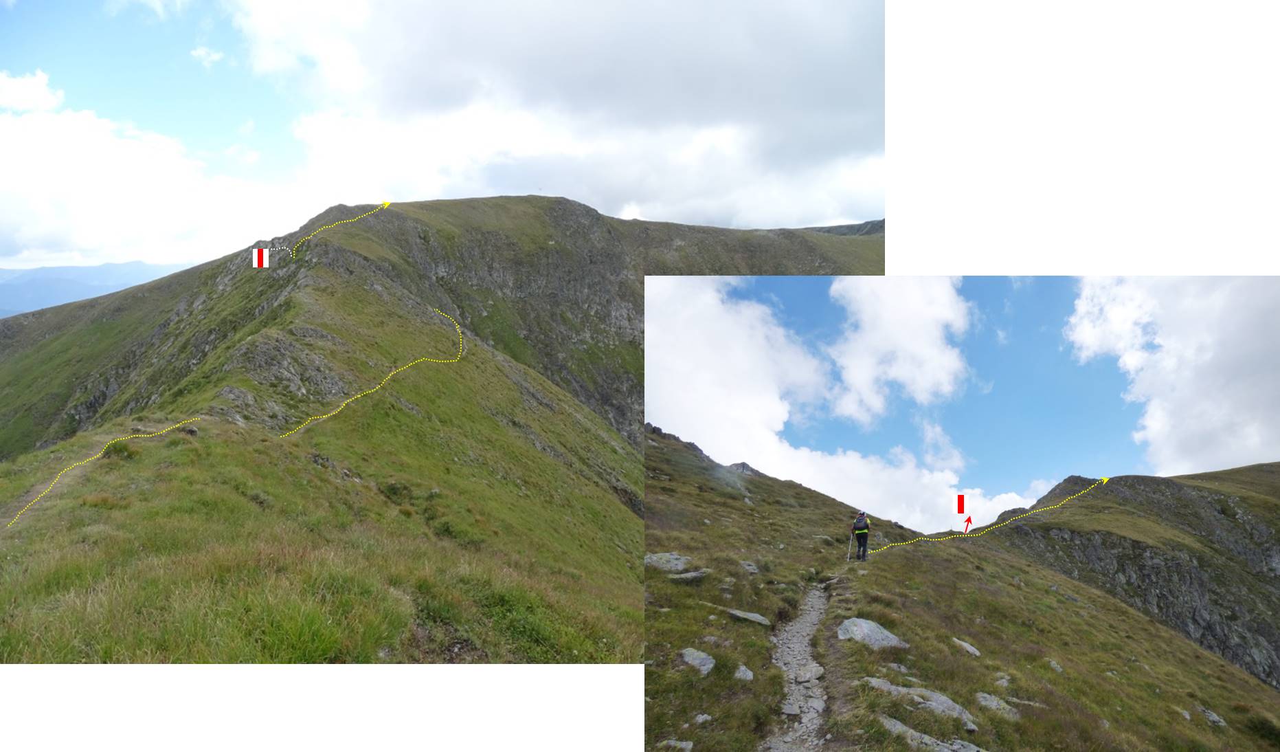 … căci revenim pe ea într-o mică șa unde părăsim culmea principală a Făgărașului – și, implicit, “banda roșie”- suind pe un … șold al Fundului Bândei !