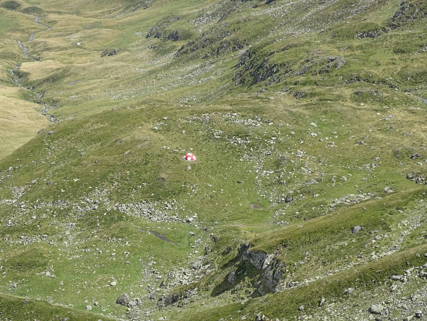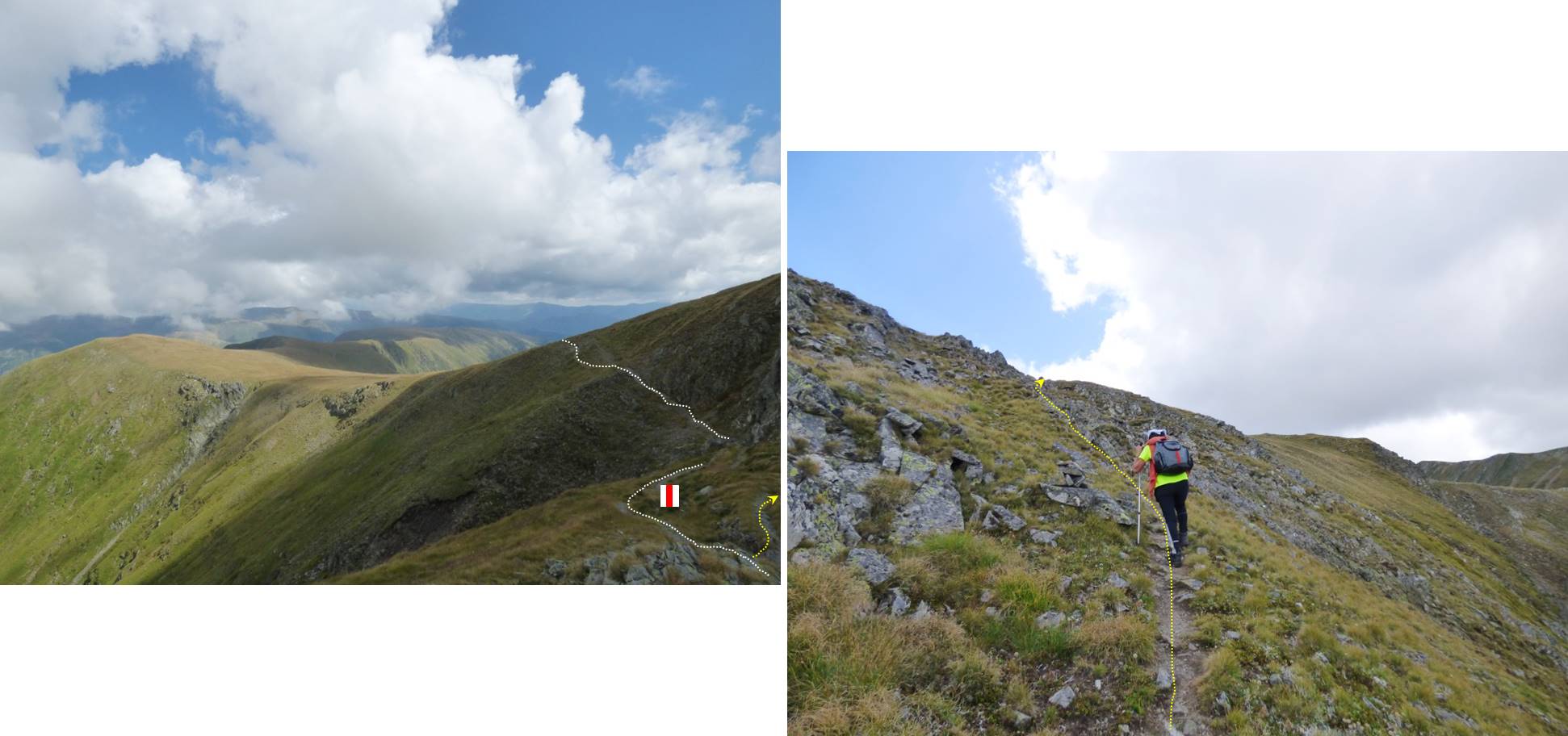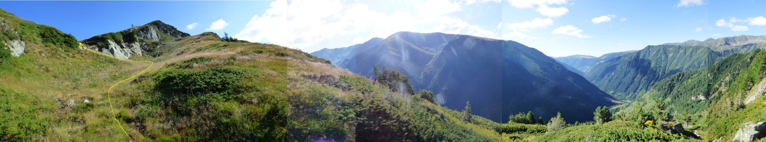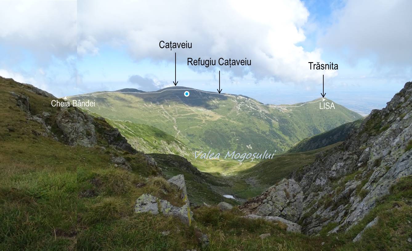 … căci revenim pe ea într-o mică șa unde părăsim culmea principală a Făgărașului – și, implicit, “banda roșie”- suind pe un … șold al Fundului Bândei !