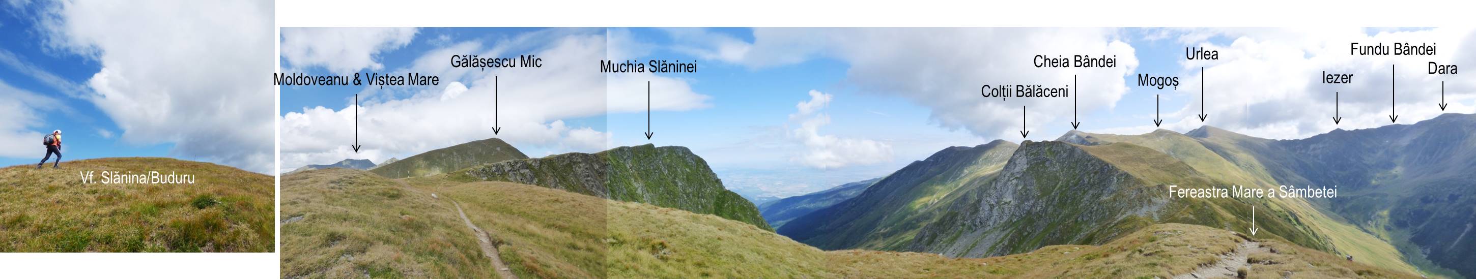 Traseu: Gura Bândei – Mt. Slănina – Fereastra Mare a Sâmbetei – Vf. Urlea – Portița Lacului (Urlea) – Vf. Iezer Vf. Fundul Bândei – Vf. Dara – Valea Bândei – Gura Bândei