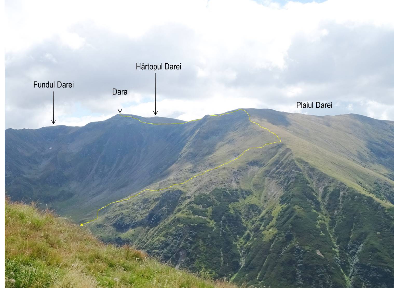 Vizavi, putem evalua cu mai multă … strictețe, traseul de coborâre de pe Plaiul Darei, încercând să reținem cât mai multe repere !