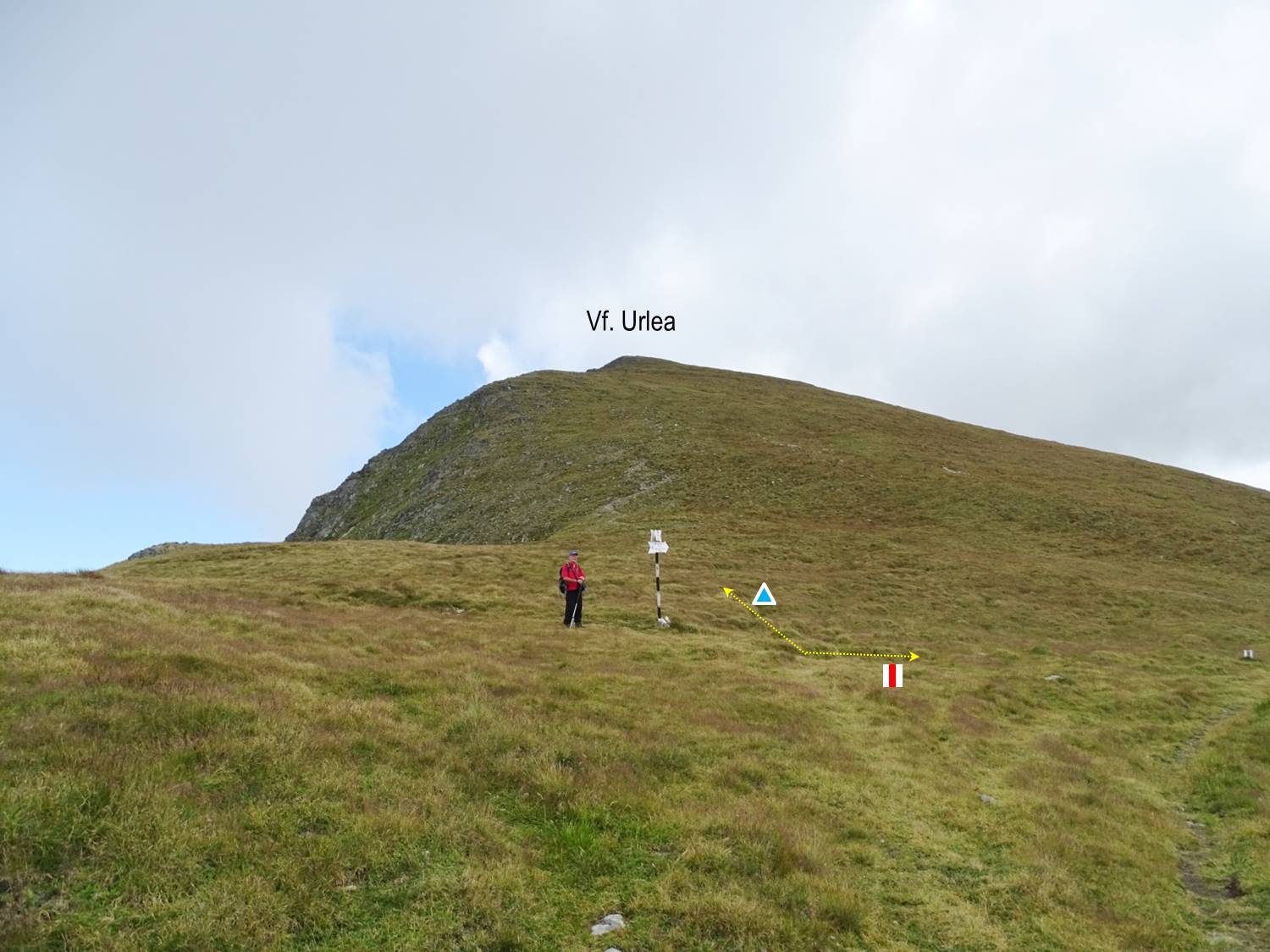 Vârful Urlea nu poate rămâne doar o provocare … pentru viitor, așa că îl urcăm; printr-un reprezentant (fără rucsac) ! Râmâne însă … pentru viitor – când acolo jos nu mai așteaptă cineva (rucsacul, desigur) – traseul de reîntoarcere la “banda roșie” !