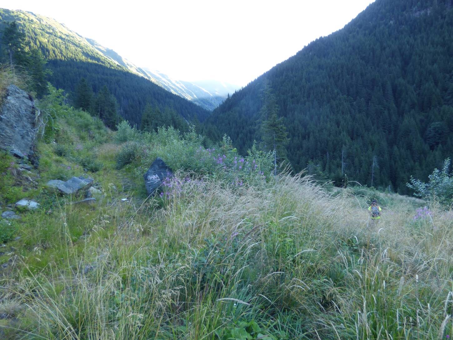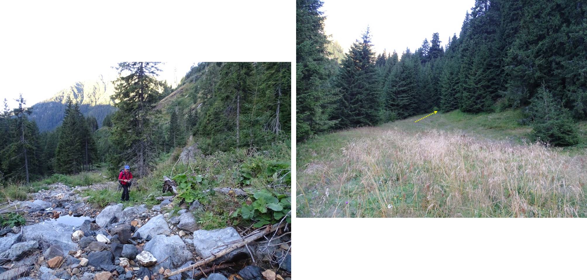 … este o stână, un punct de reper, pentru o altă variantă de abordare a Muntelui Slănina (în zona podețului – care poate lipsi – există o bogată vegetație specifică ocoalelor de oi): …