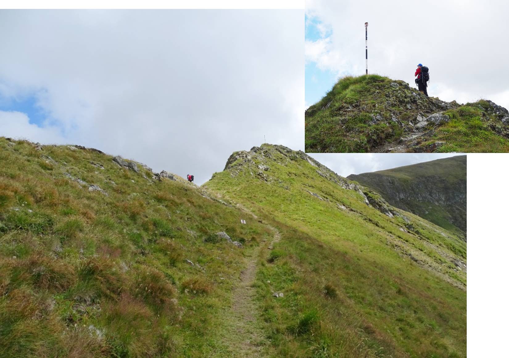 De cum ajungem pe vârful care marchează schimbarea drastică a direcției culmii, de la est-vest către nord-sud, ne orientăm spre nord-vest, …
