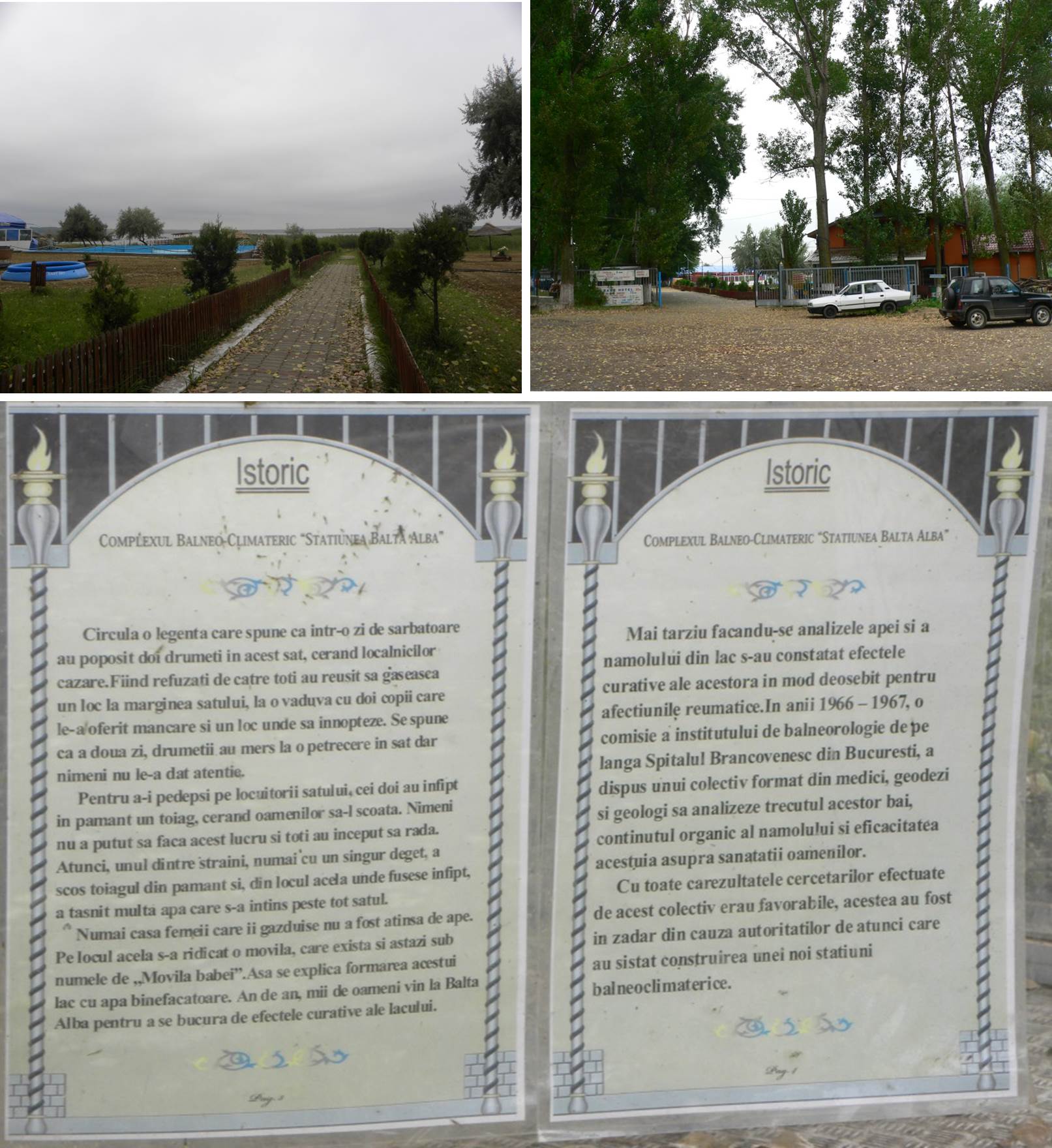Așa-zisa stațiune, cuprinzând o bază de cazare, restaurant, spații de agrement (piscine, laculețe de pescuit și, zice-se, tratament), încearcă să renască din … propriul nămol, bazându-se pe un renume, încă nu uitat de tot. Primul stabiliment de aici datează de la începutul sec. XIX, fiind destul de populară pe la mijlocul acestui secol (precum ne sugerează Vasile Alecsandri în povestirea sa din 1867, Balta Albă !), dezvoltîndu-se, mai ales, după ce medicul Carol Davila stabilește proprietățile terapeutice ale nămolurilor din lac (vezi aici descrierea stațiunii la 1860, dar și “istoria” ei ulterioară).