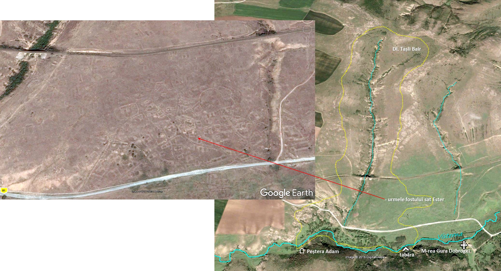 Este vorba despre urmele (căci ruinele este cam mult spus) satului Ester, numit pe primele hărți (1829, 1835, 1869, 1917) ce-l consemnează, respectiv Ister, Novoi Visteriki, Nov. Ister, Yeni (= nou, din turcă)-Wisteri. Satul – dispărut după Primul Război Mondial – luase locul unui vechi oraș, aflat la cca 3 km spre vest, în apropierea Târgușorului. Despre acest oraș se vorbește întâia dată în 1538, când Soliman Magnificul a întreprins o expediție militară de pedepsire a domnitorului moldovean Petru Rareș; era numit Istrabaghî. În documente ulterioare apre ca Astrabad/Astarabad/Asterabad, Istrabad/Isterabad, Ester-Abad (abad = oraș în persană), Ister/Ester; apoi, Vistuar/Vistiar/Wistwar, Wister/Vister/Visteri. Orașul a dispărut (părăsit, distrus ?) la începutul sec. XIX. [Istoricul amănunțit și documentat al Esterului se poate citi aici !]