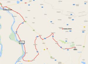 – la Crucea părăsim DN 2A, pe care tocmai intrasem, pentru DJ 224 – asfaltat, dar deteriorat (nota 4) – ce ne-a scos prin Băltăgești în Siliștea (20 km);