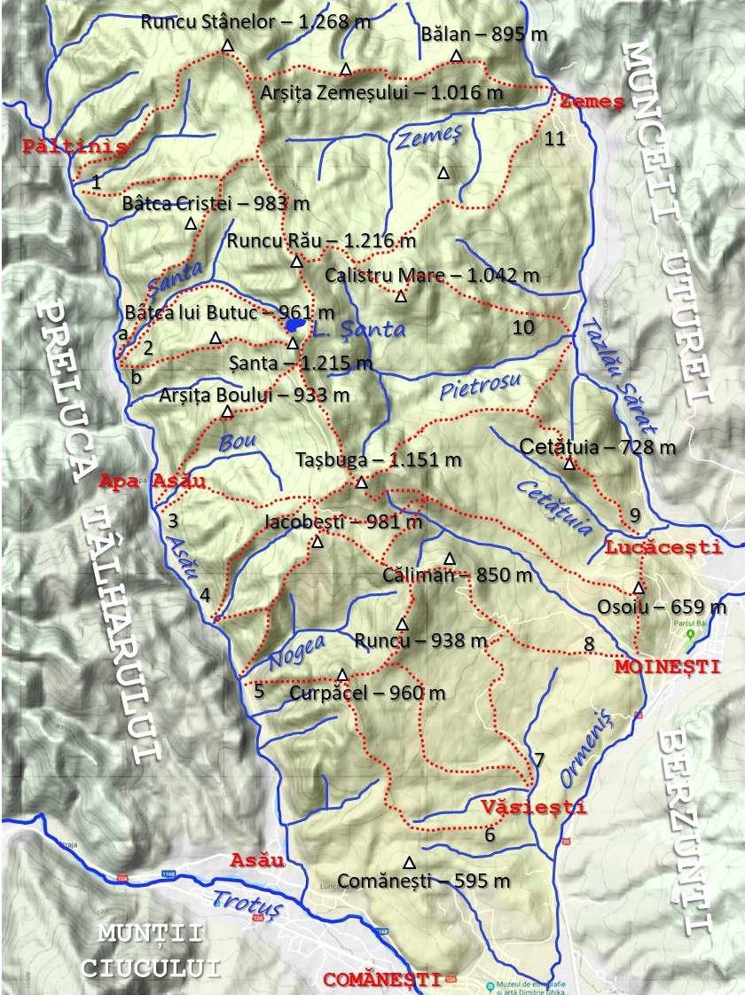 7. Moinești – Dl. Căliman – Plaiul Porcăriei – Vf. Tașbuga – Dl. Fagului – Dl. Osoiu – Moinești (*) (**)
