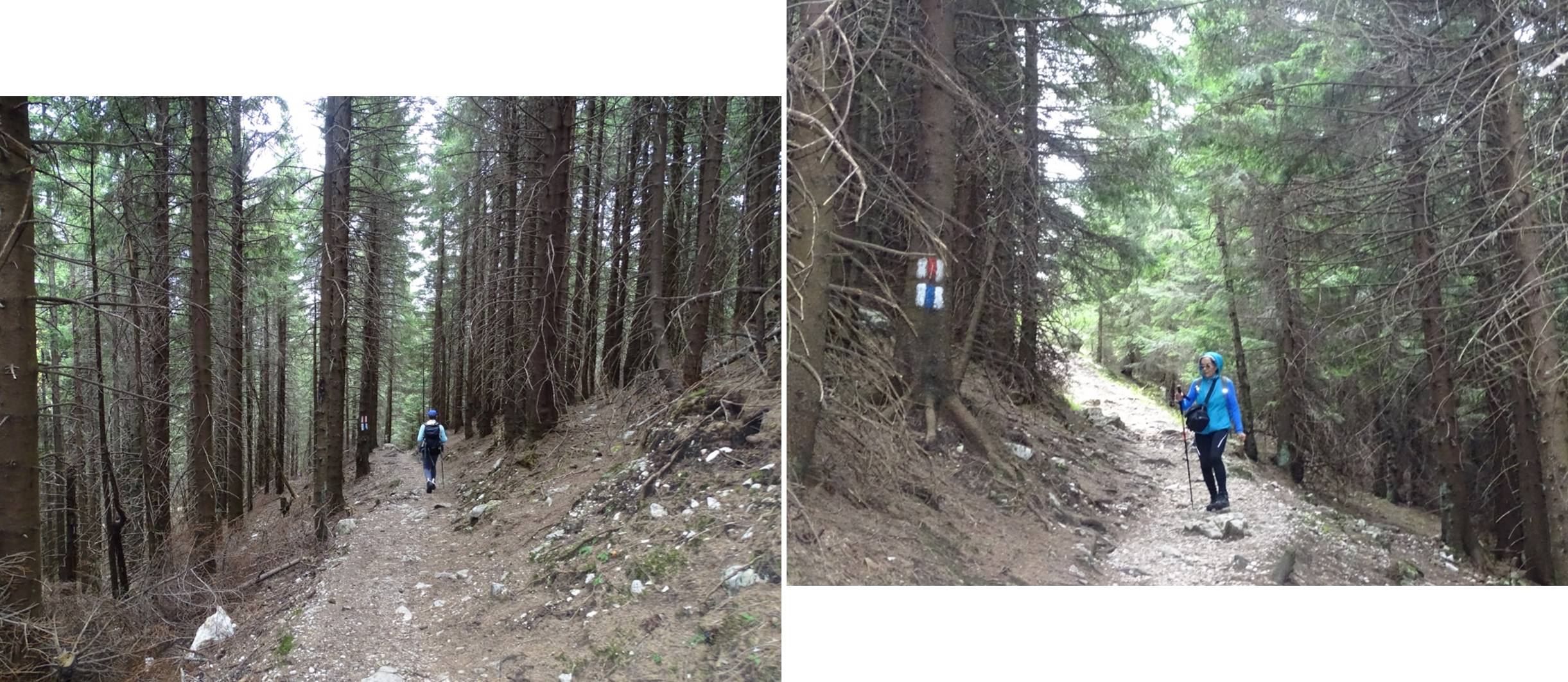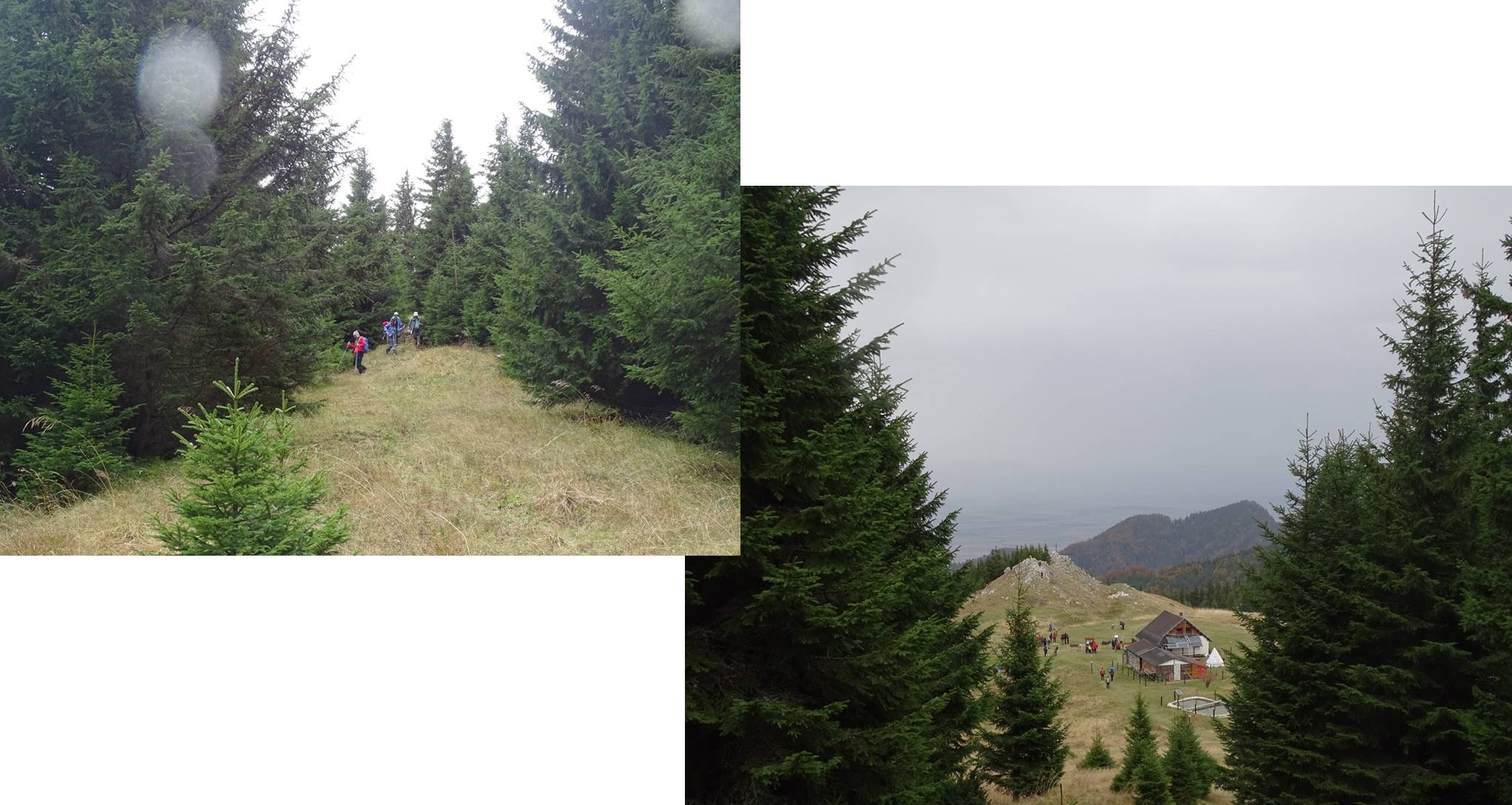 … oprindu-ne în prima poieniță, cea unde poteca “triunghi albastru” ce vine de pe brânele de sub Coada Piatrei Mari și Piatra Scrisă se racordează cu “banda roșie”.