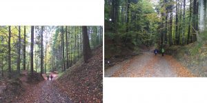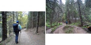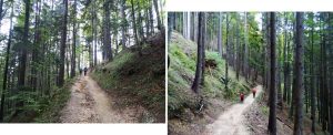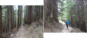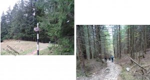 Părăsim poiana cabanei (numită și Poiana Șura de Piatră) pe … tricolorul celor trei benzi, “galbenul” rămânând repede … singur, pe o potecă ce pleacă în stânga noastră spre Canionul 7 Scări !